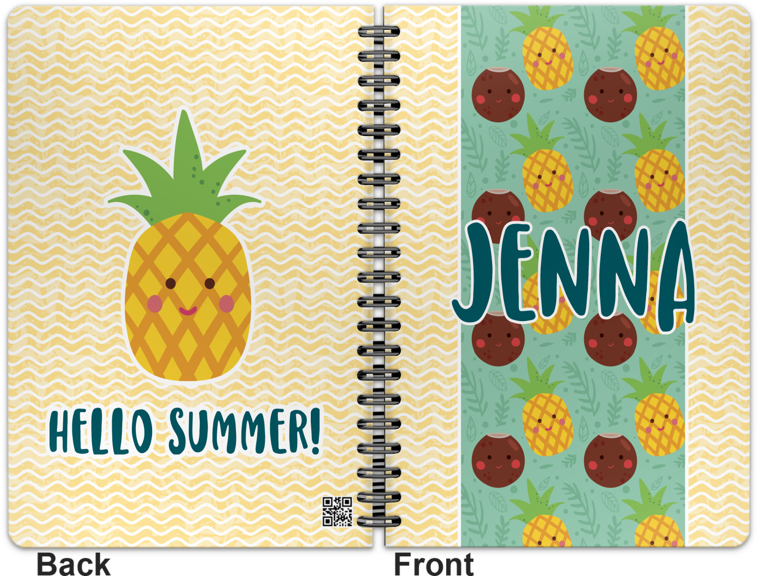 This spiral notebook includes 75 sheets of thick, ruled paper. The front and back of this custom notebook is made of a robust, laminate, plastic covering. We print your personalization on these two panels, underneath a glossy finish, which emphasizes the colors of your design. The two panels and the sheets of paper are held together by a sturdy, black coil. The paper within your bound notebook is perforated for easy, clean tearing.