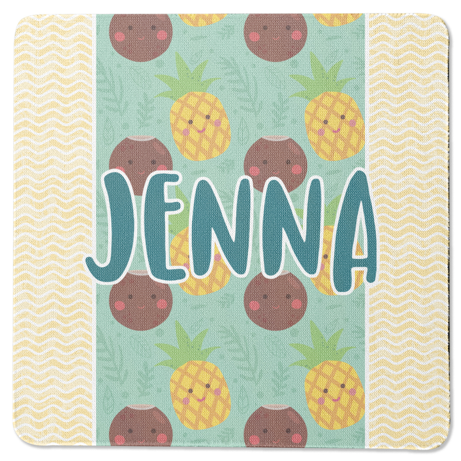 These drink coasters have a smooth, polyester top and a textured, rubber backing on its bottom. The non-slip rubber backing underneath works to keep any spills at bay. At 4 by 4 by 0.25 inches thick, these custom coasters are a suitable size for most drinkware. Your personalization is displayed atop the face of the cup coaster. We sell these rubber coasters in two different shapes: square and round. You can buy each shape as singulars or as a set of 4.