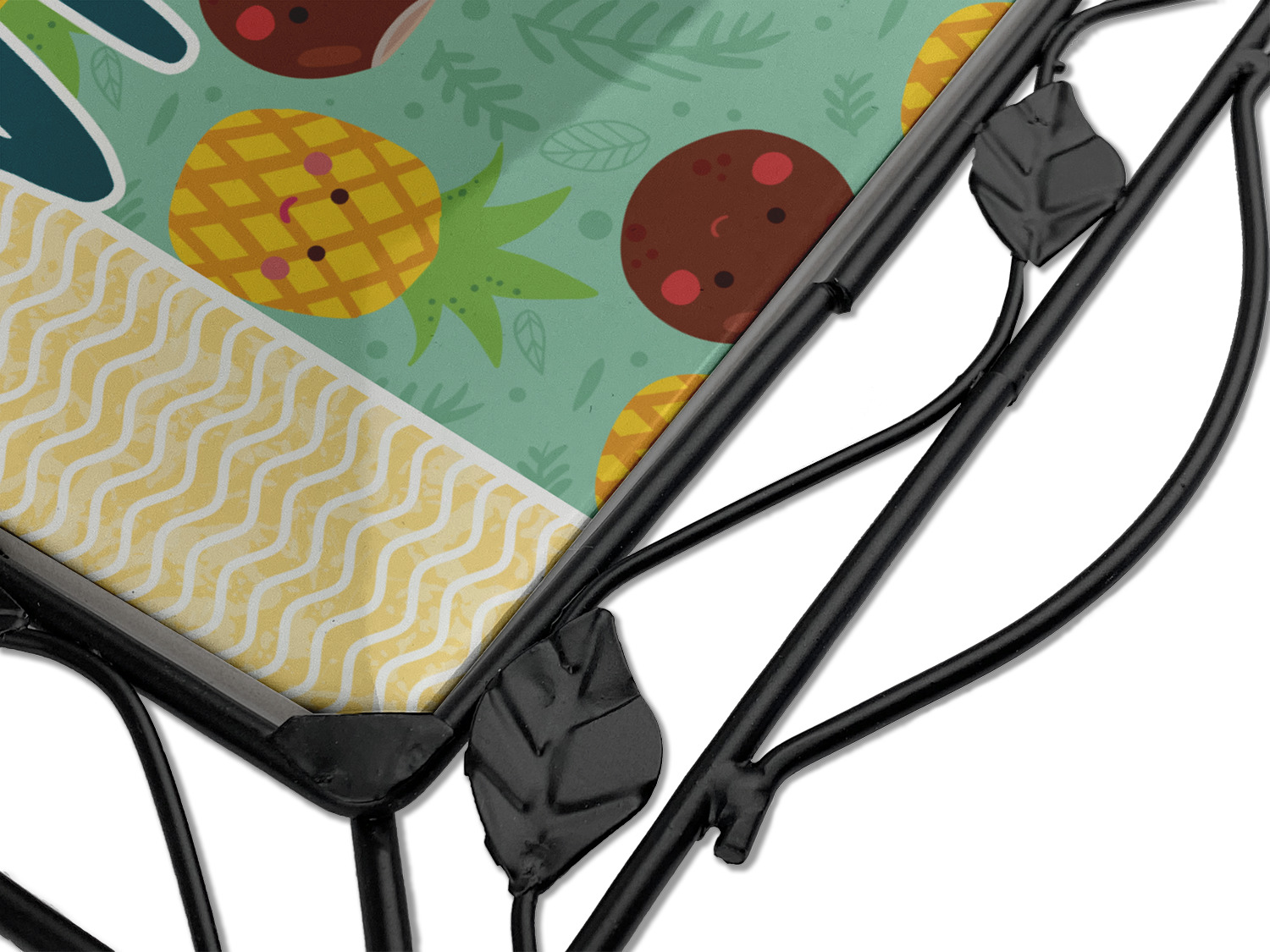 This design is filled with happy coconuts and pineapples to brighten your day. A nice teal color is used behind them, while a yellow chevron is used as the secondary pattern.