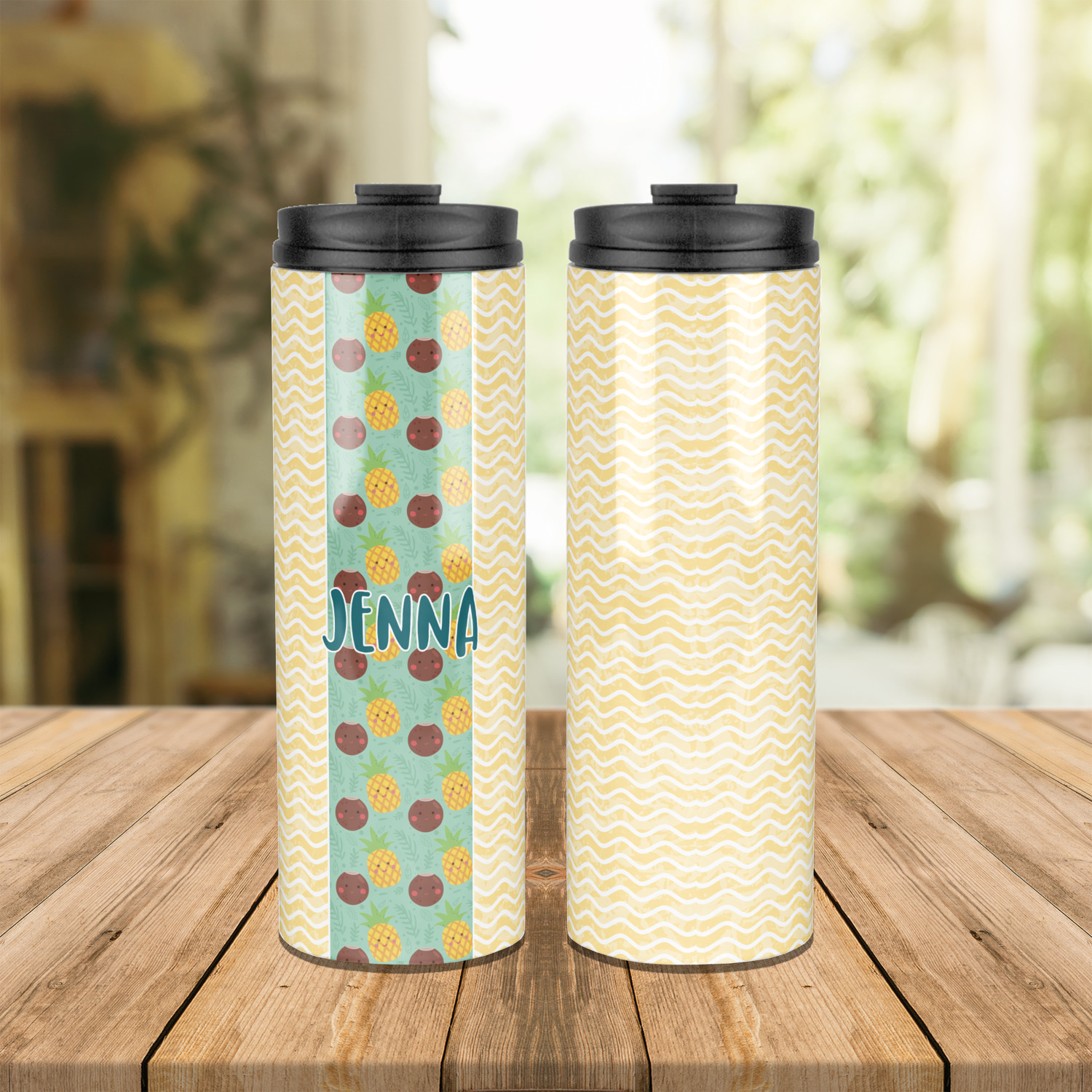 Sip your favorite drink on the go with your own custom stainless steel tumbler! Our slim cylinder shape is perfect for holding your drink in hand, in your purse, or in your backpack! This sleek and modern tumbler is a perfect gift for coffee and tea lovers keeping their drinks just the right temperature throughout the day! We offer two sizes, a 16 oz. or 20 oz., to personalize. Browse and customize or design or create your own with our online design studio!