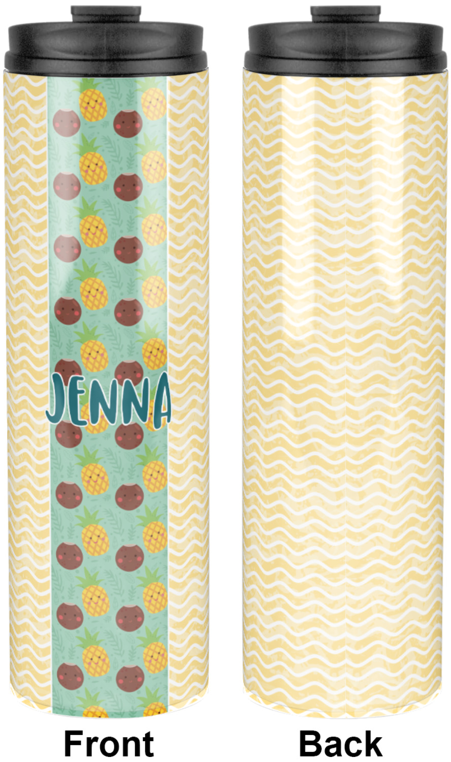 Sip your favorite drink on the go with your own custom stainless steel tumbler! Our slim cylinder shape is perfect for holding your drink in hand, in your purse, or in your backpack! This sleek and modern tumbler is a perfect gift for coffee and tea lovers keeping their drinks just the right temperature throughout the day! We offer two sizes, a 16 oz. or 20 oz., to personalize. Browse and customize or design or create your own with our online design studio!