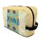 Our toiletry bag has the traditional dopp kit design i.e. a side to side zippered closure, giving you easy access to all the contents inside and a sturdy handle on one side of the bag. The canvas fabric for dopp kits is printed, then cut and sewn here in the USA.