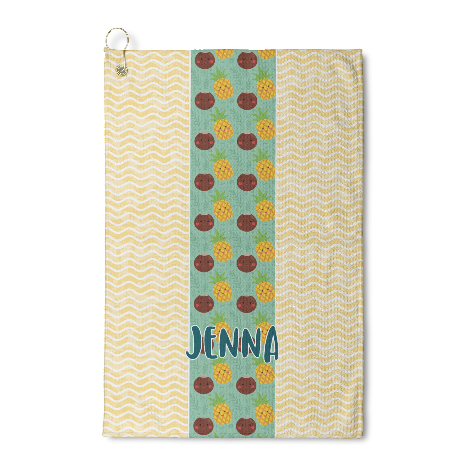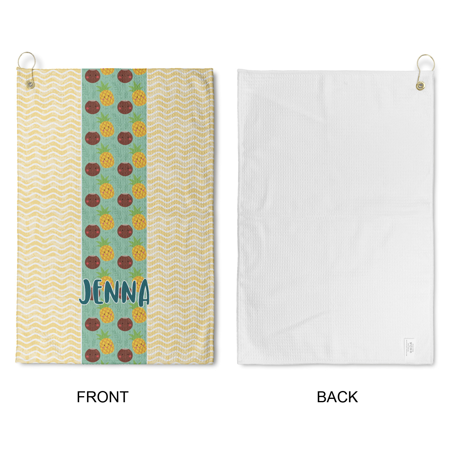 Personalize your design for your towel in our design studio then we will custom print and make it for you. The heavy duty brass grommet and hook are perfect for hanging anywhere you need it to. The waffle weave material is a durable microfiber material that will absorb up to 7 times its weight.