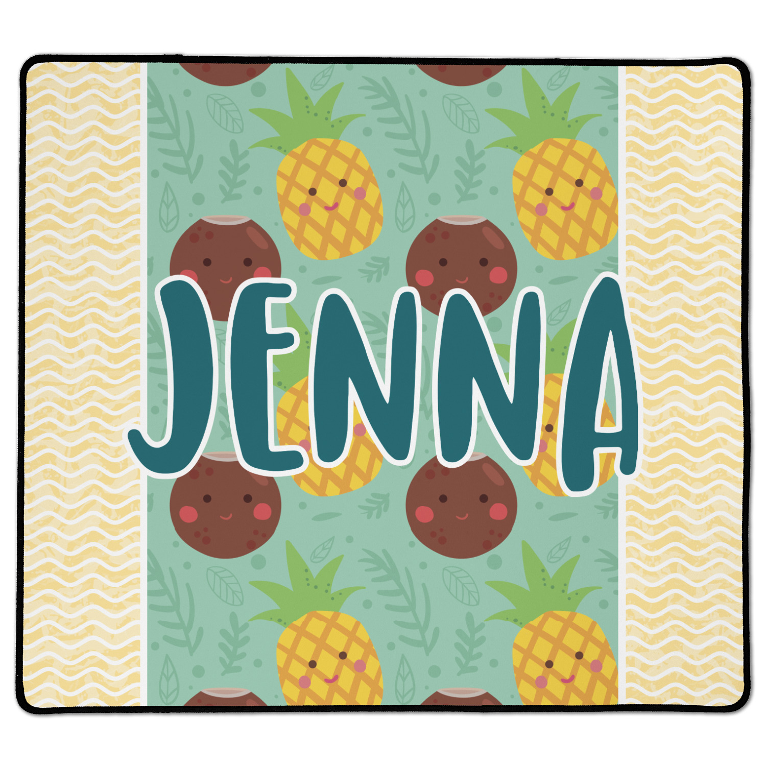 This design is filled with happy coconuts and pineapples to brighten your day. A nice teal color is used behind them, while a yellow chevron is used as the secondary pattern.