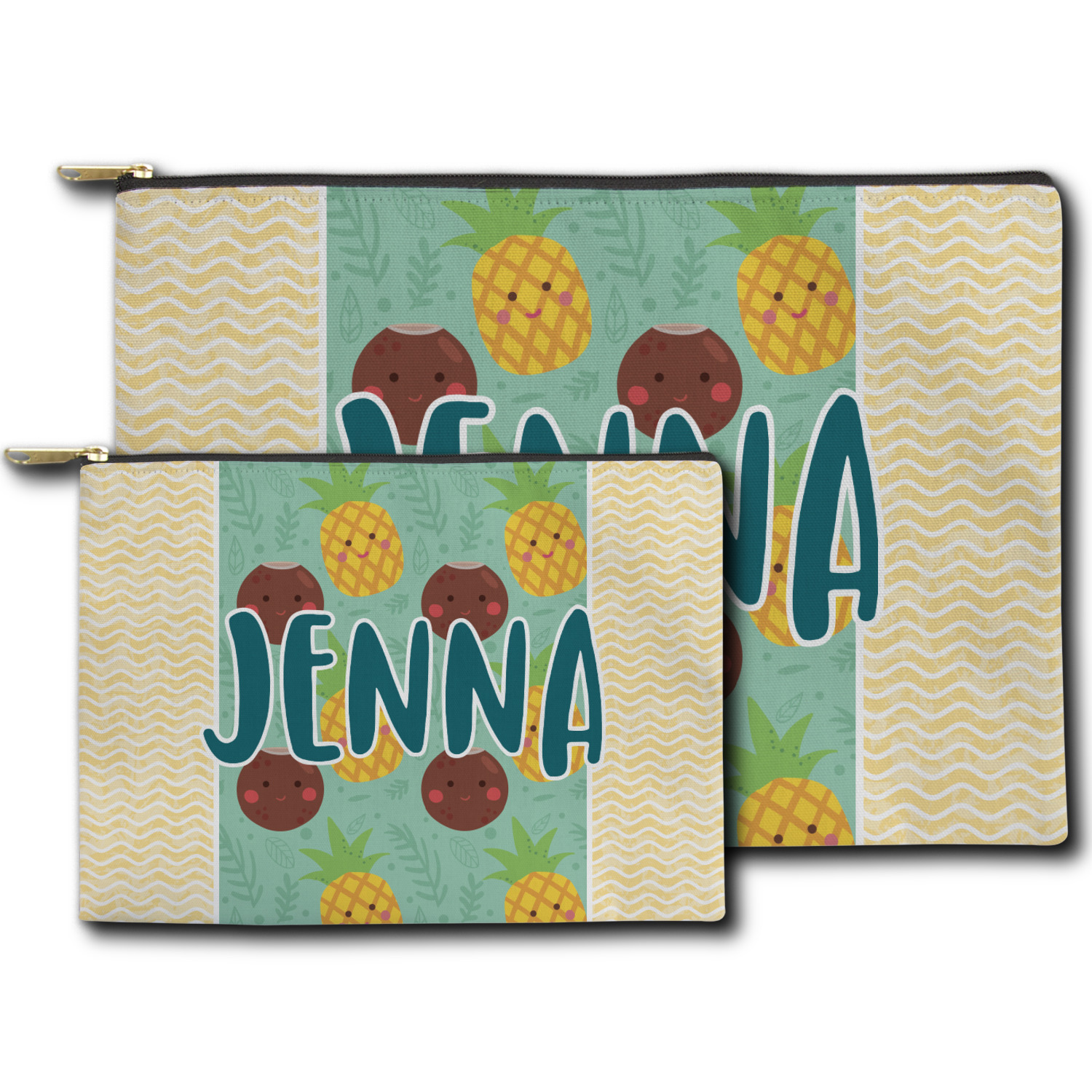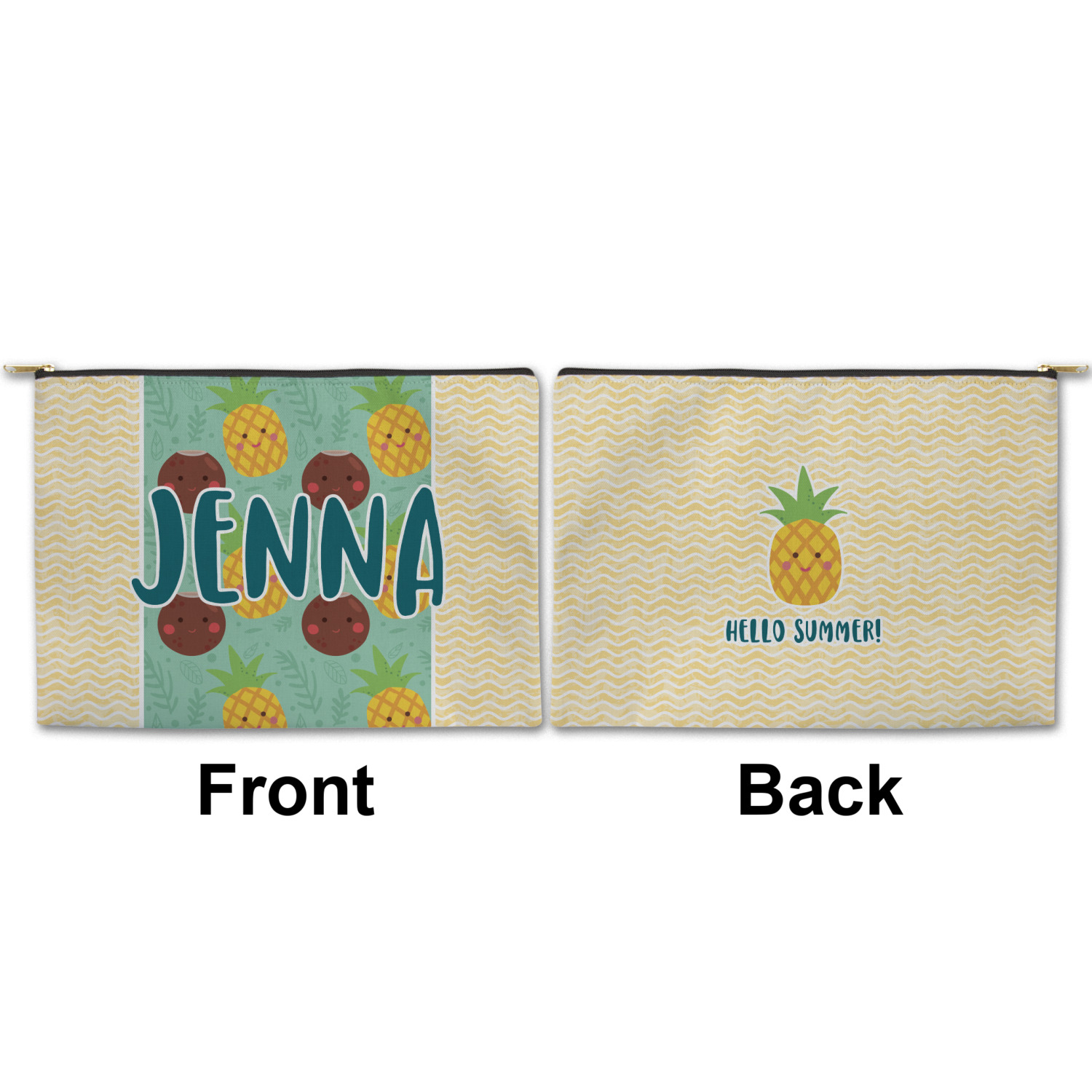 You can design both the front and the back of the pouch - same design, two complementary designs or two totally different designs - the choice is yours! We offer many different personalization styles i.e. name, name & initial, monograms - so the choice to personalize is also yours.
