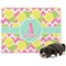 The coordinating design has a large, bright pineapple on the left side with a mint ribbon running behind it. On the right side of the ribbon is the personalized text. The background is a bright pink and white chevron. You are sure to be noticed with this bright design!