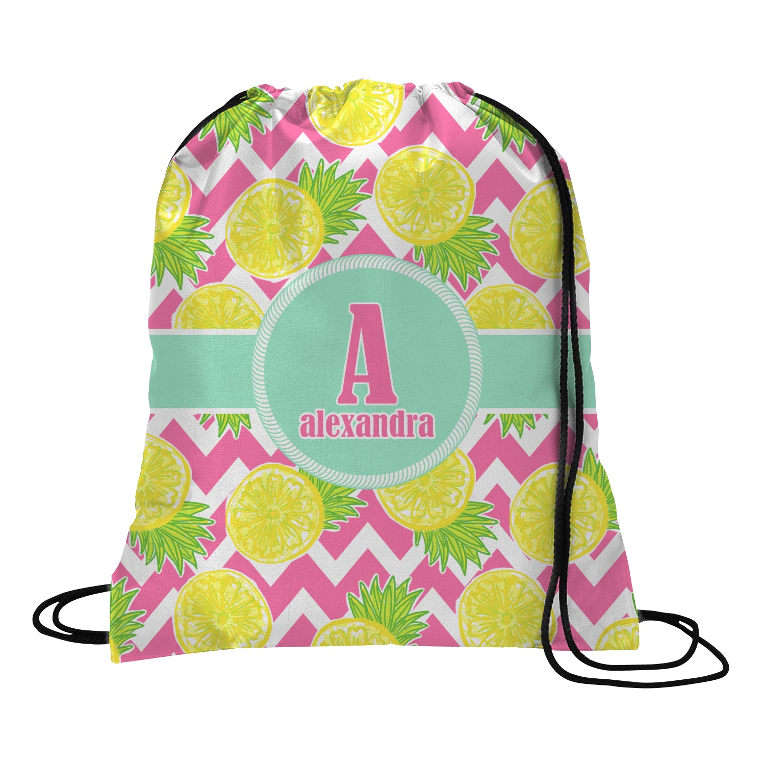 Our drawstring backpacks are custom made for you here in the USA. We offer a great selection of cinch bags and it is your choice to personalize them with the text of your choice, in the format of your choice i.e. monogram, name, initial, name & initial. We offer many different patterns and prints; and many of the patterns are available in 45 different colors.