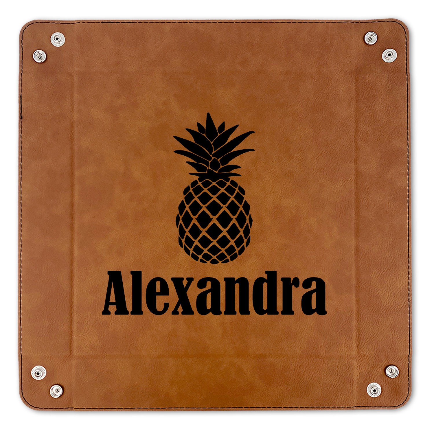 The leatherette wraps the hard board base and sides with flexible hinges to fold the sides up. The corners are secured using silver snaps. The 6in x 6 in tray measures approximately 9.5in x 9.5in when laid flat. The 9in x 9in tray measures approximately 13in x 13in when laid flat.