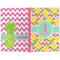 The main design has a background with bright pink and white chevron with some crazy yellow and lime pineapple slices scattered on top. A soft mint color is used for the ribbon and label, while a pink is used for the personalized name and initial.