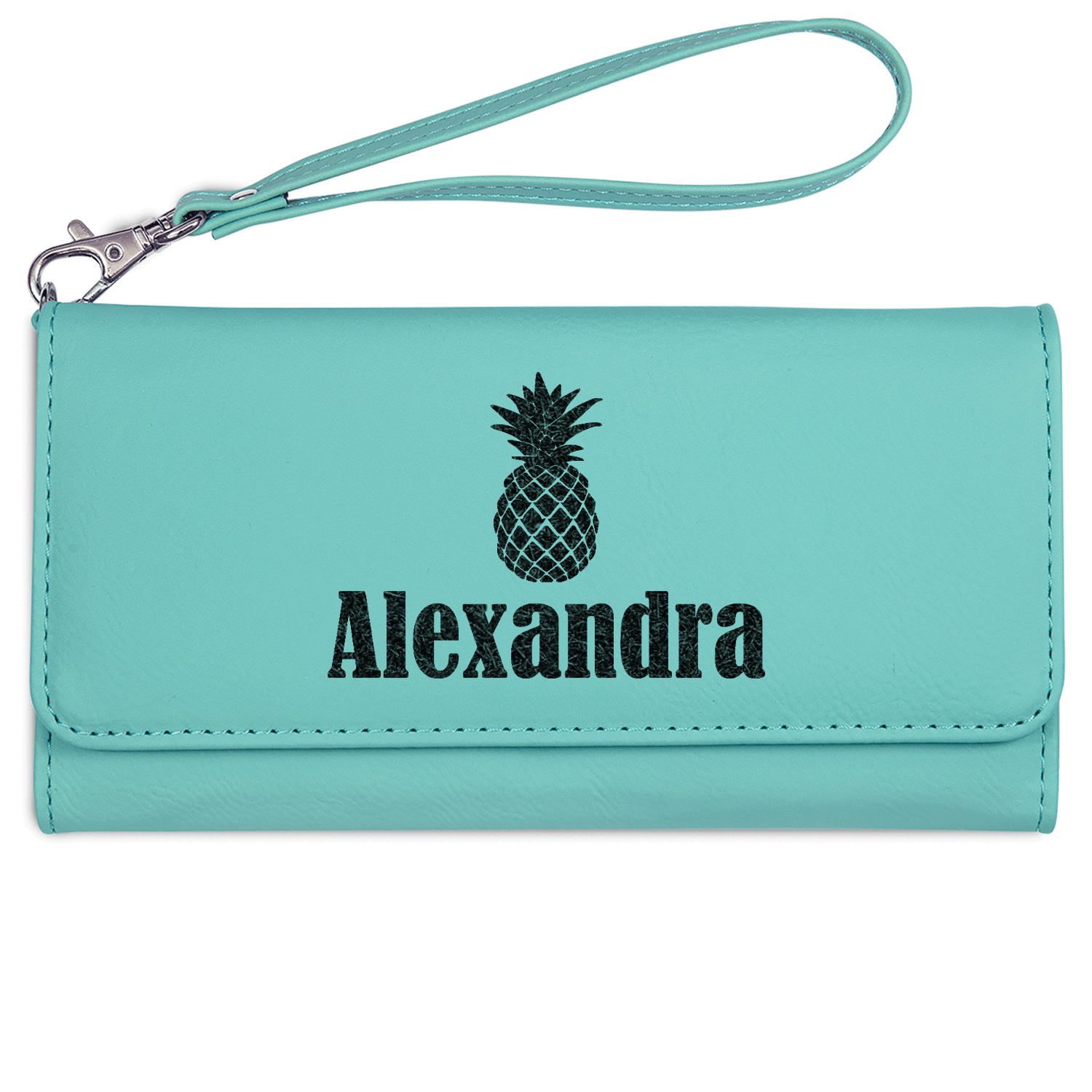 These personalized ladies leather wallets are available in 2 colors - rawhide / cognac and teal.