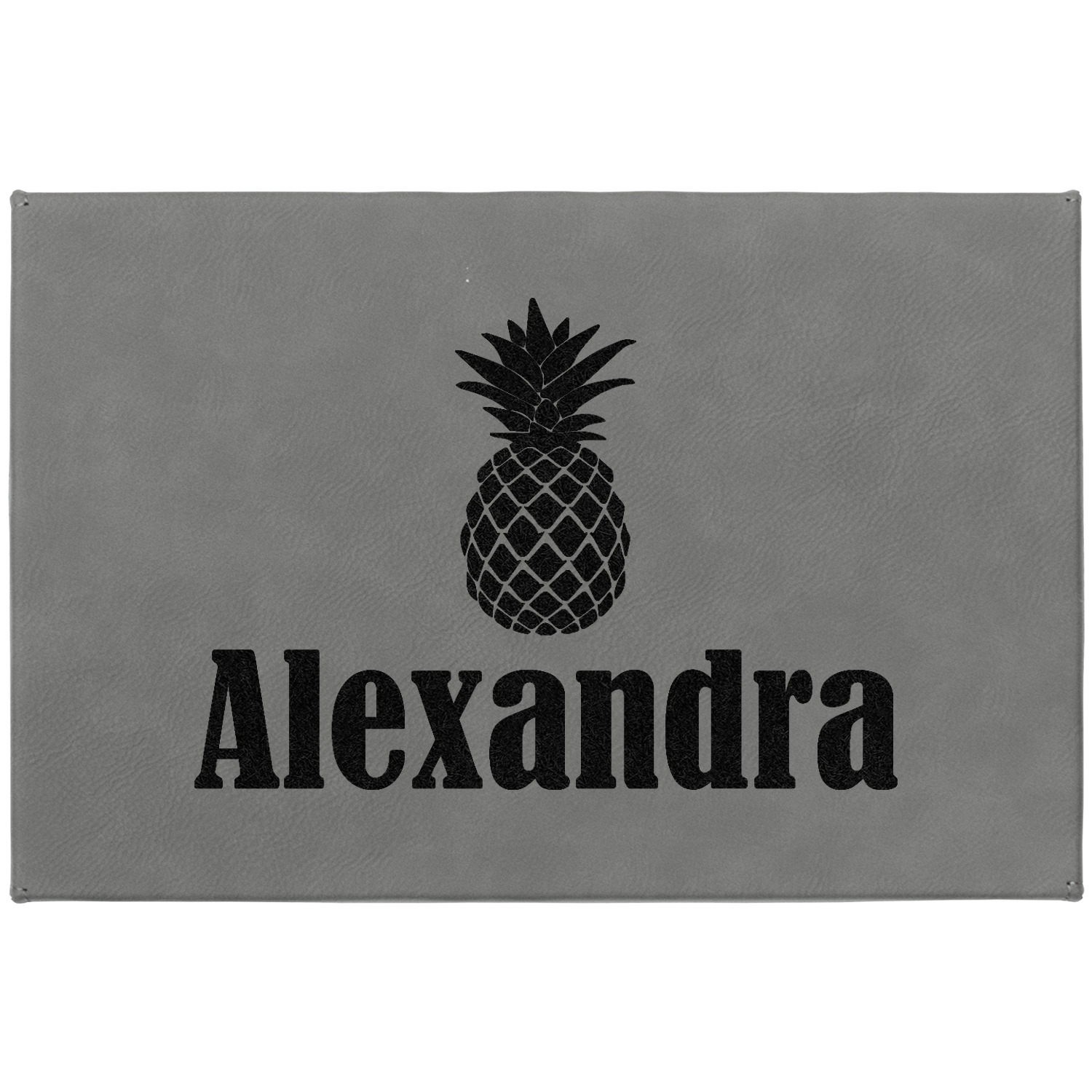 The coordinating design has a large, bright pineapple on the left side with a mint ribbon running behind it. On the right side of the ribbon is the personalized text. The background is a bright pink and white chevron. You are sure to be noticed with this bright design!