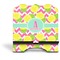 The main design has a background with bright pink and white chevron with some crazy yellow and lime pineapple slices scattered on top. A soft mint color is used for the ribbon and label, while a pink is used for the personalized name and initial.