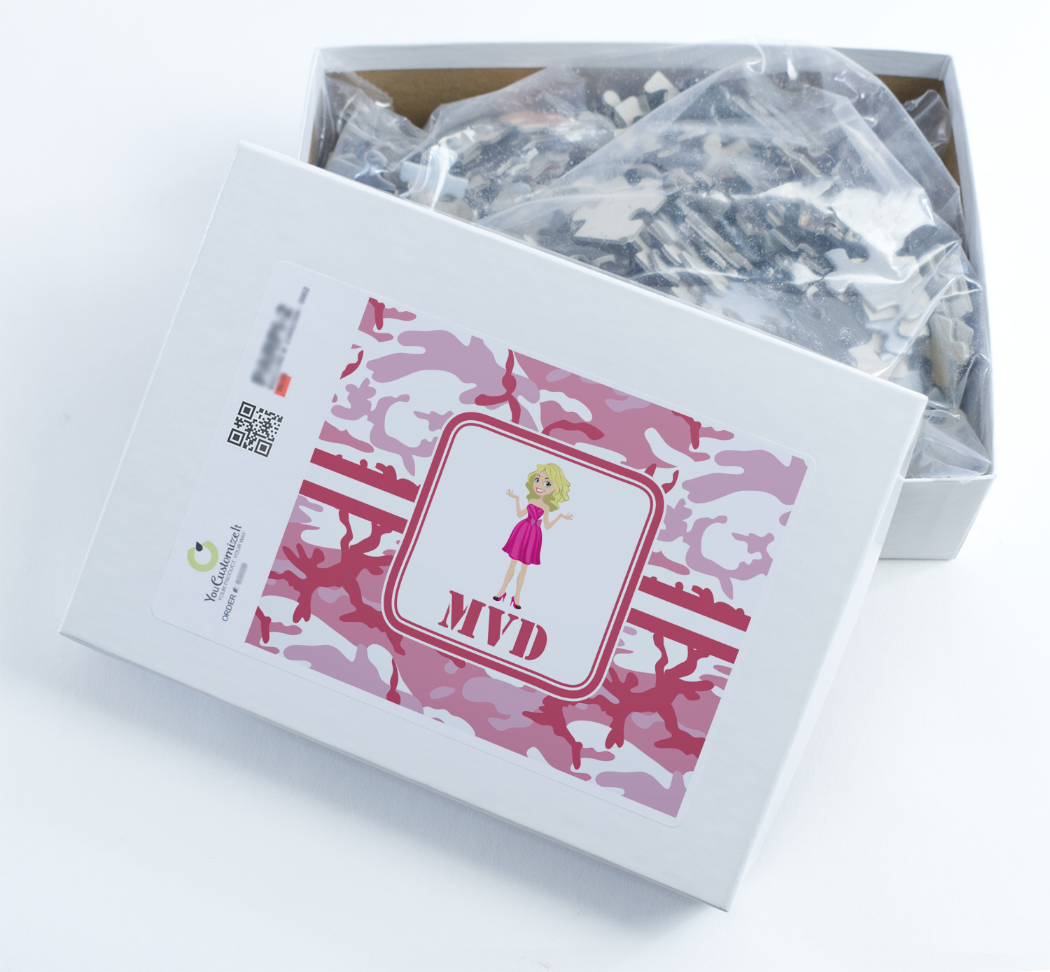 You can also upload your logo or art that you or your kids drew. To create more challenging jigsaw puzzles, you can create a pattern from with your logo or artwork. You can also add other elements such as text or personalization.