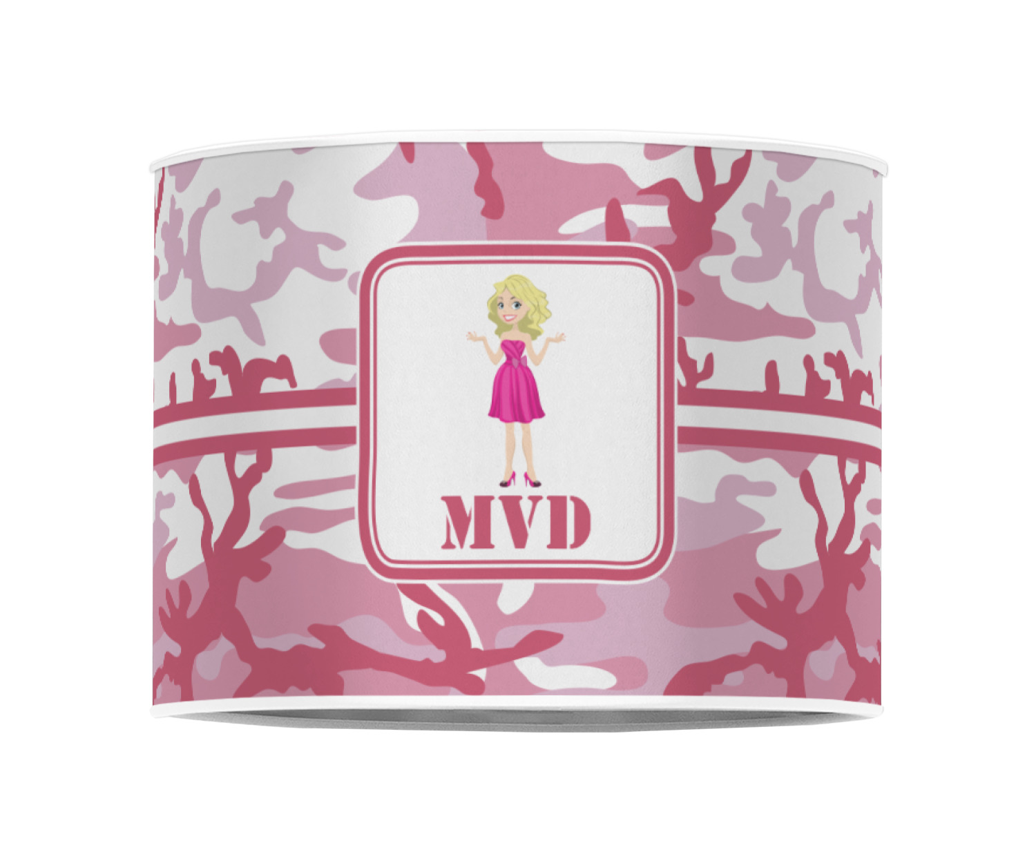 We have featured our little army girl, wearing her pink camo helmet, in the middle of the design in a pink and white square. A wide white band trimmed in pink tie everything together.