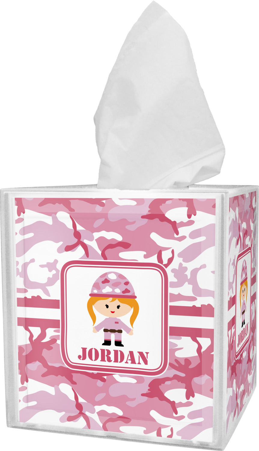 These tissue holders are built from durable acrylic and display your unique personalization on fine-quality vinyl inserts placed within the four sides and top. The box features two pieces, allowing you to easily switch out tissue boxes. On the sides, you'll find ridges that ensure the top and base fit securely in place. The bottom of these tissue box holders has four, rubber, non-slip pads to prevent the box from scuffing any surface you decide to display it on. Each box can fit a standard 5-by-5-inch box of tissues.