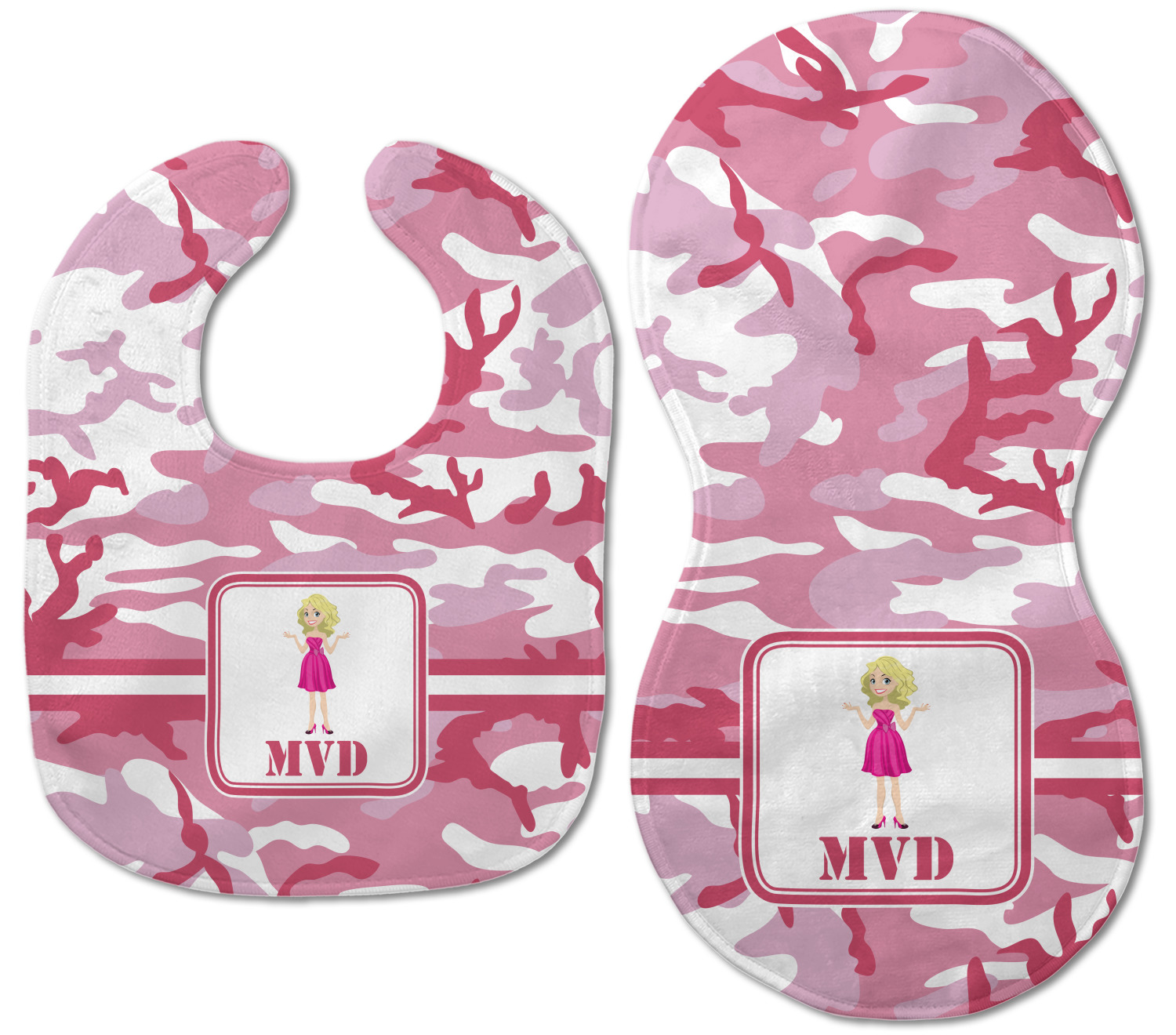 Both our baby bib and burp pad are made up of soft, microfiber velour with a cotton backing. The comfortable and plush material of our bib and burp set is perfect for both baby and parent. We print your design on the microfiber velour face fabric with baby safe ink on your customizable bib and burp cloth to ensure safety for the little one! Our drool bib also comes with a Velcro clasp for safe and easy wear while the burp cloth is a unique peanut shape that perfectly hugs over the shoulder.