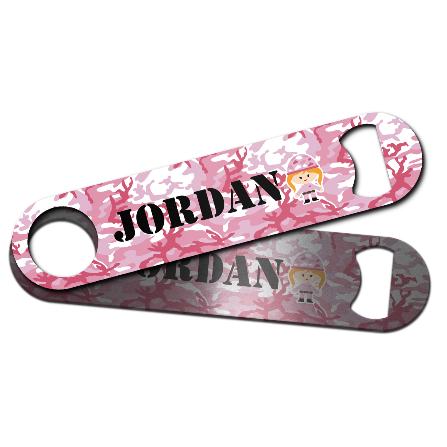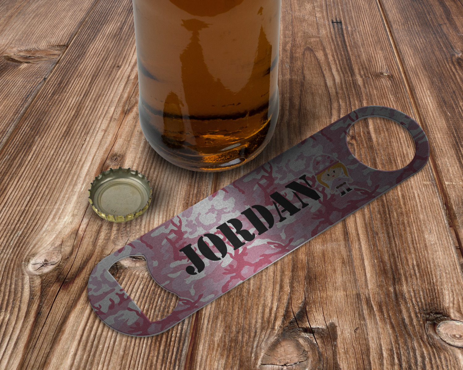 Stop struggling with the caps or your bottled beverages by purchasing one of our personalized bottle openers! These wrench-like custom bar blades are built to last. Customize one for your home's bar, or as a practical gift for a loved one!