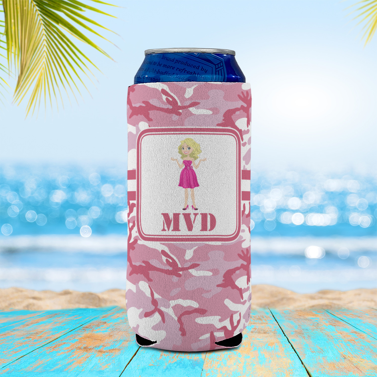 We have featured our little army girl, wearing her pink camo helmet, in the middle of the design in a pink and white square. A wide white band trimmed in pink tie everything together.