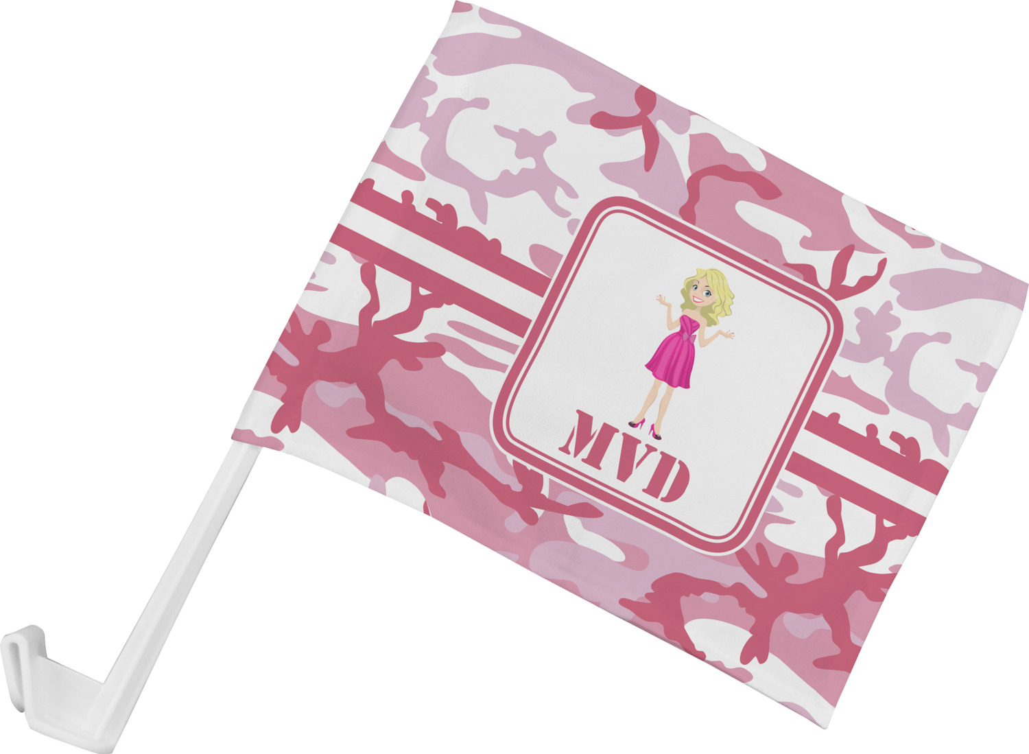 Our personalized flags are made from a durable, yet lightweight cloth that will proudly bear your logo or design of choice, while withstanding the outside elements. We have two size options - 8" x 11" and 11" x 15". Both come with a flag pole which includes a clip that secures the pole to the side window, whether it is rolled up or down. The flags are printed on both sides to display your design from all directions.