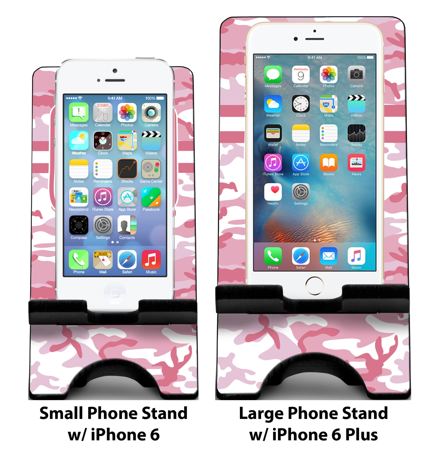 To meet your needs, we offer four variations of this IPhone stand. The backboard of the first version is shaped as a plain, yet sleek rectangle, and is available in two sizes. Our smaller size is approximately 4 by 3.25 by 7 inches, while the larger model is 4 by 3.77 by 8.5 inches. Alongside this model, we also provide you with a more decorative option. The upper part of our second version features a curved edge, for a classy, suave appearance. This phone holder is also sold in two sizes: a smaller version, which is 4 by 3.25 by 7 inches, and our larger model, which is 4 by 3.77 by 8.5 inches. Both models will support large phones, but the larger model is better if you wish to proudly display your personalized design.
