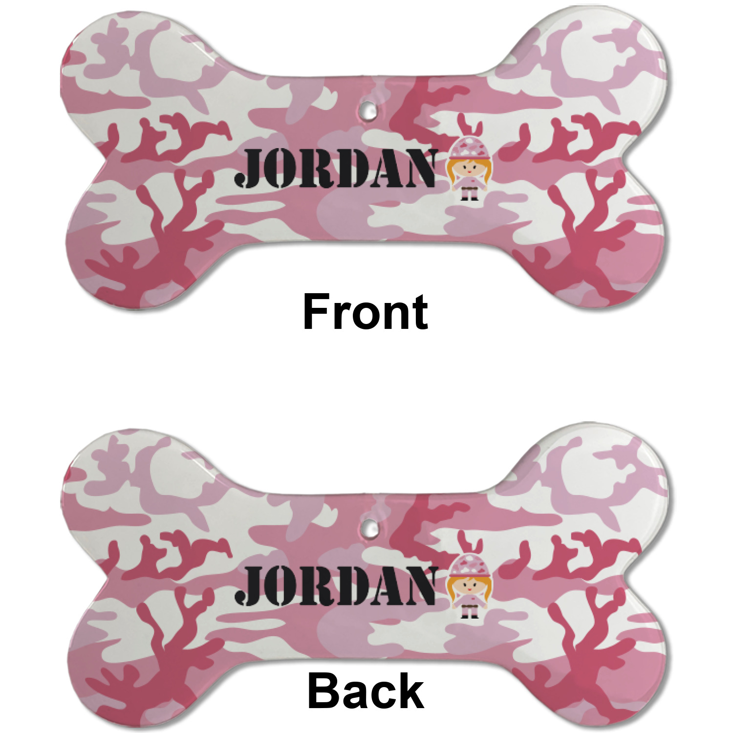 Our dog Christmas ornaments are a ceramic material with a bone-shaped structure hung horizontally. We offer two printing styles to personalize your furry friend's ornament! Choose a one-sided printing, perfect for wall decor, memorial accessory, or doghouse nameplate! Create a double-sided ornament perfect for adorning the Christmas tree. Each dog bone ornament is approximately 4.75" x 2.25" and is printed here in the USA.