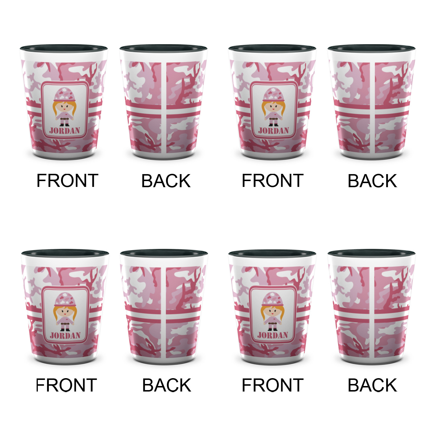 Made from ceramic these shot glasses are printed in full color with the design of your choice. These are a standard 1.5oz size and stand 2.25" tall. Available in a full white ceramic or a two-tone with a black color inside the shot glass. Buy a single or a set of 4, all of which can be designed separately to get you just what you want and need.
