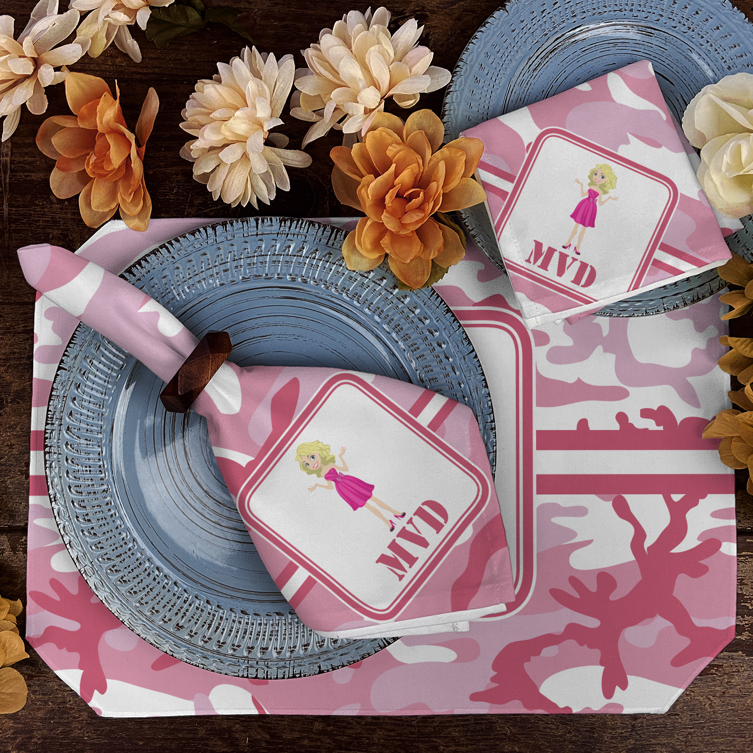 Each customizable cloth napkin is a polyester material guaranteed for long-term use. Since our napkins are cloth, it serves as a great reusable and eco-friendly dining decor. We sell personalized napkins individually or as a set of 4! Print your own unique design on all four napkins, or create four individual designs for each napkin! We offer two different napkin sizes - Cocktail napkins (approx. 10 x 10) and Dinner napkins (approx. 20 x 20). We print your design on one side, perfect for displaying your custom designed lunch napkins in any fold or table setting!