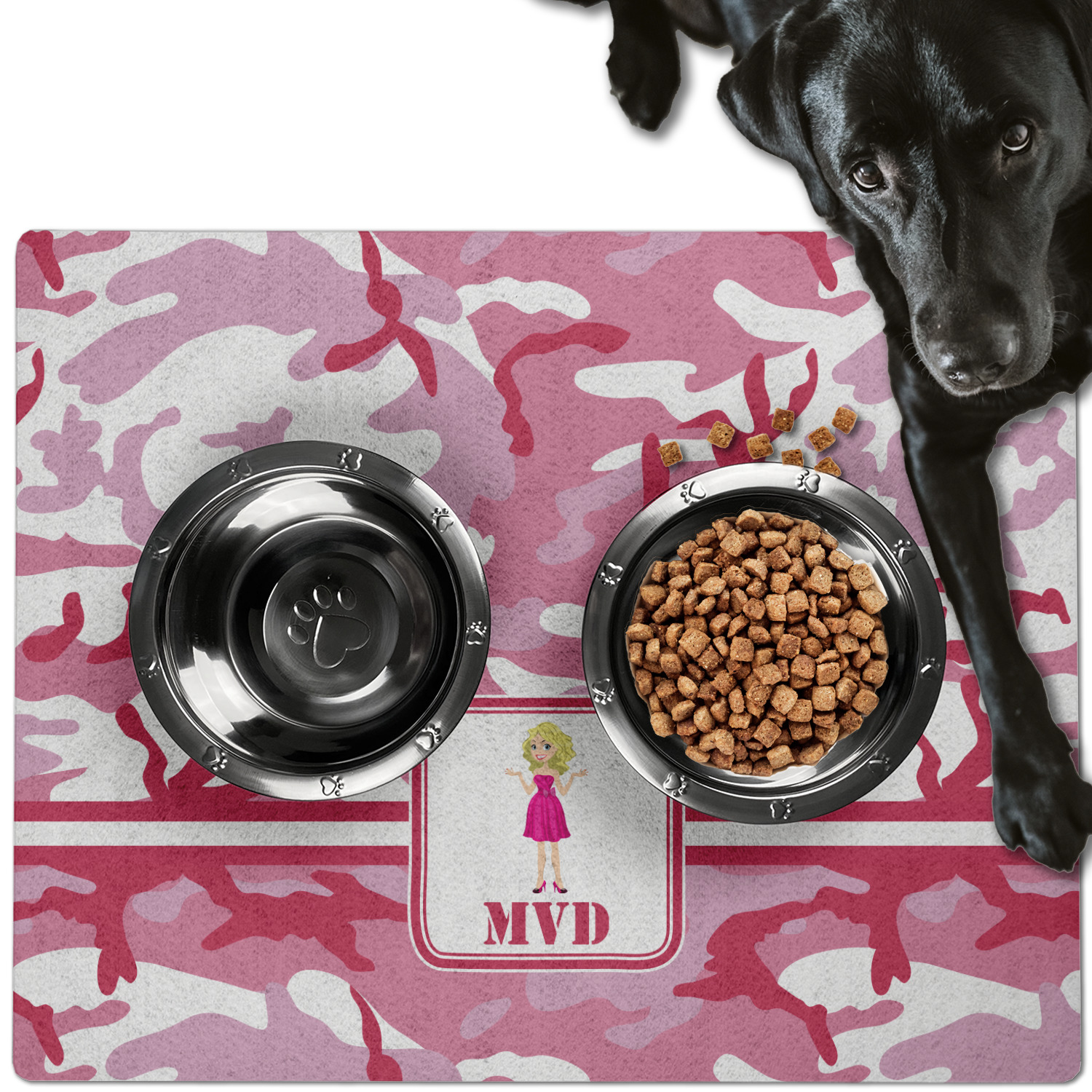 This dog bowl mat, fabricated from polyester, proudly displays your customized design on its top, while its bottom includes a non-slip rubber. This feature allows it to remain firmly in place, even when your dog spills his/her water. With 3 sizes available (18" x 12", 24" x 18", 30" x 24"), the pet food mat has ample space for both a food and water bowl for any sized dogs. Though specified for dogs' use, these mats are also a splendid option for cats.