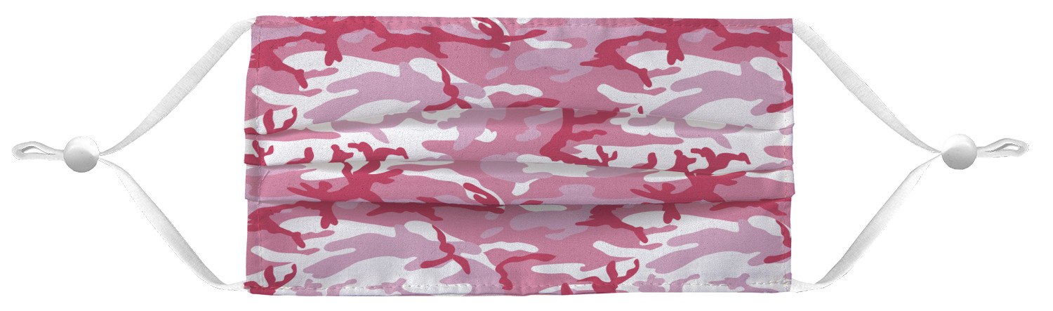These fun face masks are 7" wide and 3.5" high. They feature pleats, adjustable ear loops, and are made with two layers of fabric. The top layer where your design is printed is a breathable polyester sheeting, while the inside layer is a soft microfiber polyester