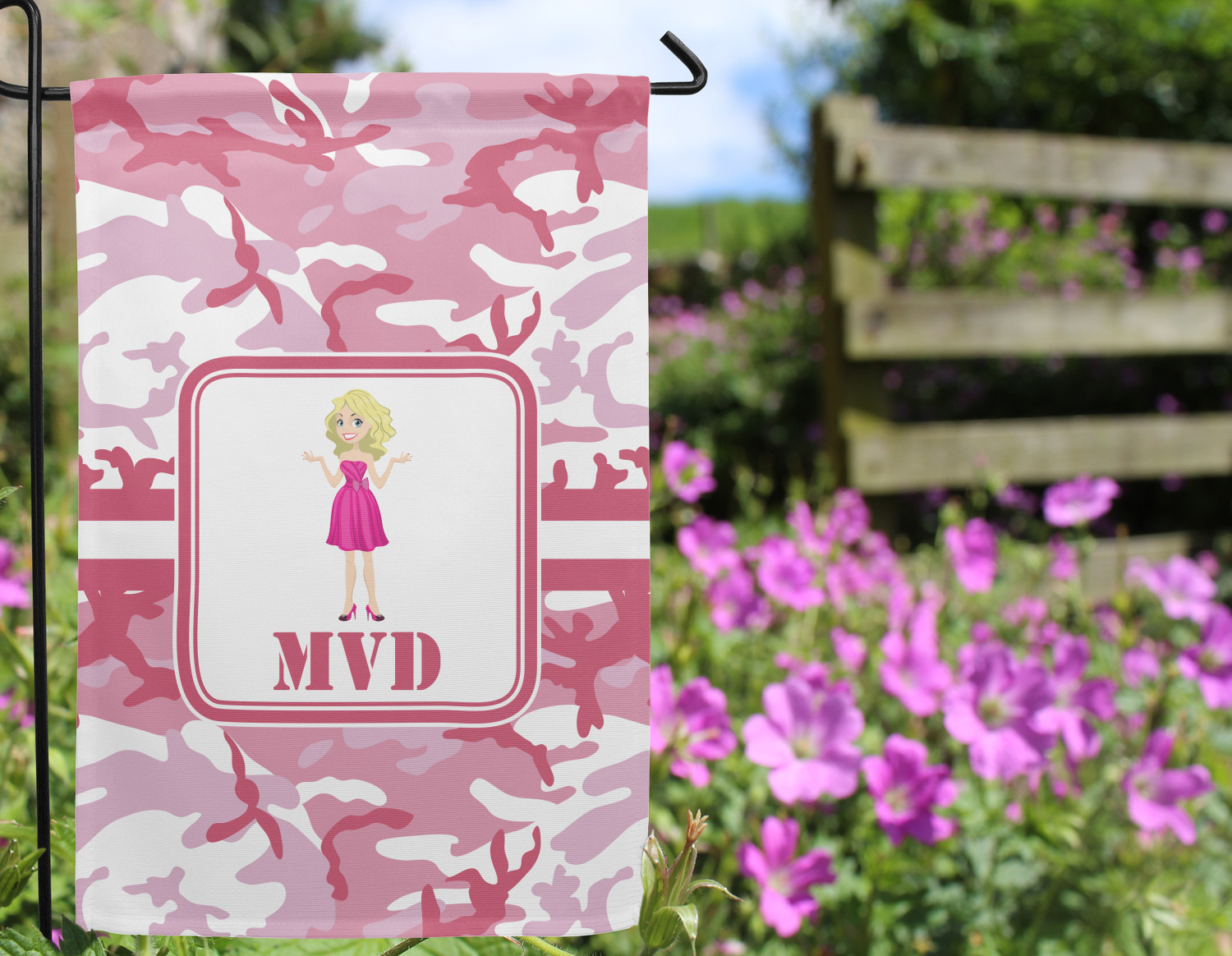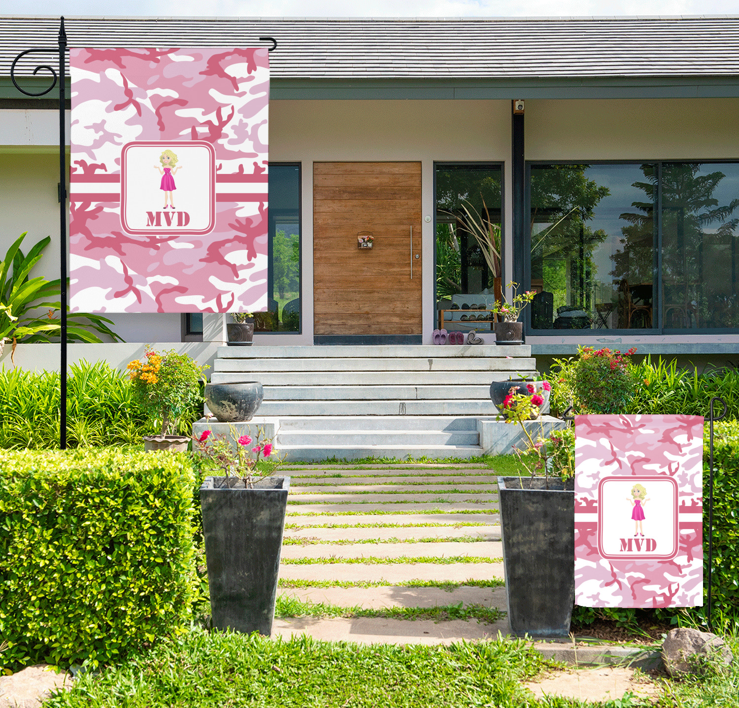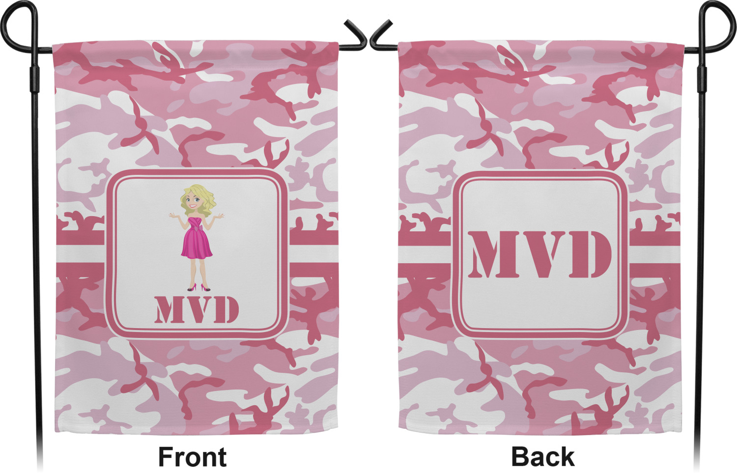 These custom garden flags are made of a durable, double-ply, polyester weave, allowing them to withstand the elements year round. The small flags measure at approximately 12 by 18 inches. The large flags measure out to 28 by 37 inches. You can order these decorative flags with your customization printed on the front only, or the front and back.