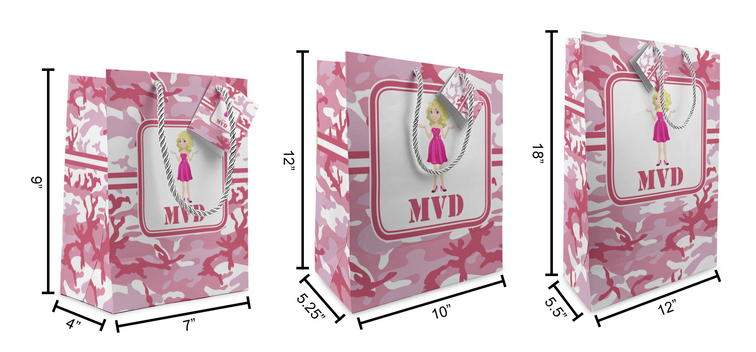 These custom gift bags come in your choice of 3 sizes. Their dimensions are below: