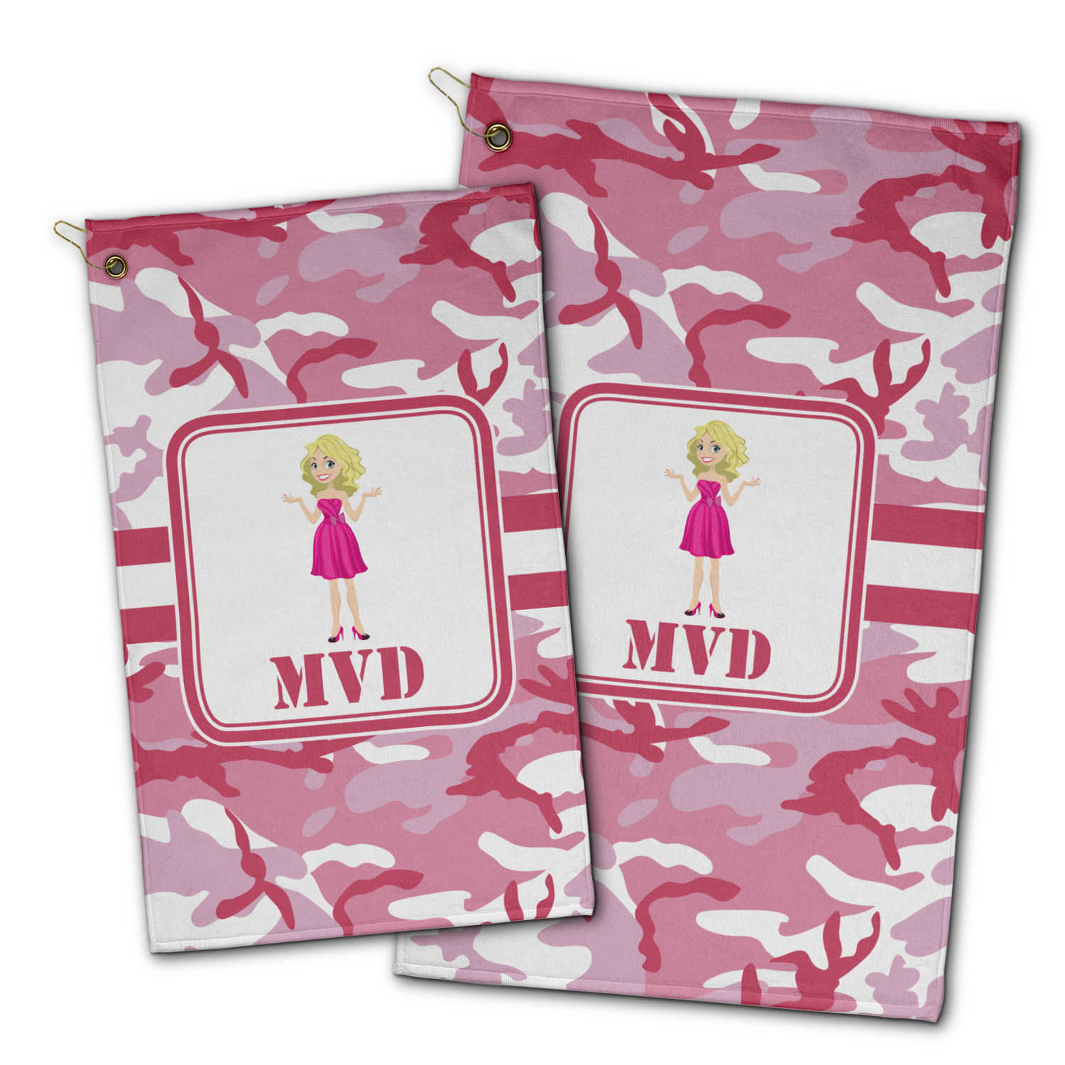 Trying to choose which golf towel is right for you? Our standard golf bag towel (one size - 13" x 18") is a terry loop style towel with a partial print that is great for normal, everyday use. If you are looking for a poly-cotton blend full print towel look at our standard full print golf towel - available in 2 sizes - small (11" x 18") and large (15" x 25"). If you prefer the look and feel of a soft microfiber towel our microfiber golf towels are a great option and allow you to polish your club and ball surfaces to a nice sheen. The microfiber golf towels are also available in 2 sizes - small (11" x 18") and large (15" x 25"). Lastly the waffle weave towel (available in a single size - 16" x 24") is a fantastic option to give you some texture on your towel to allow for more scrubbing and cleaning when playing in rougher, wetter environments. All of these options are able to be washed with bleach to get them clean and will retain their bright colors.