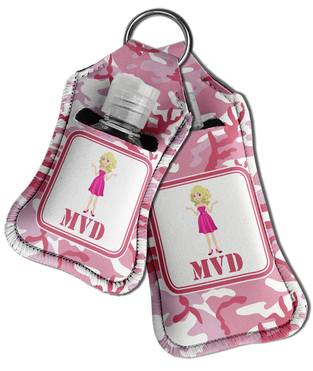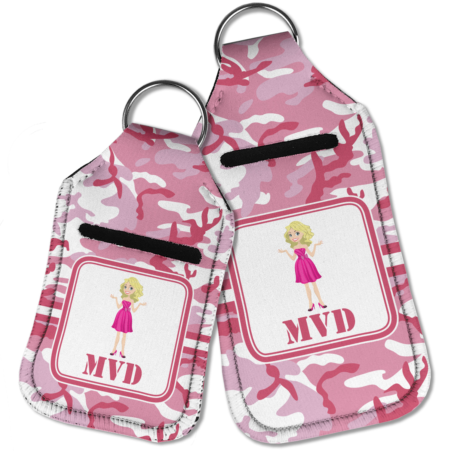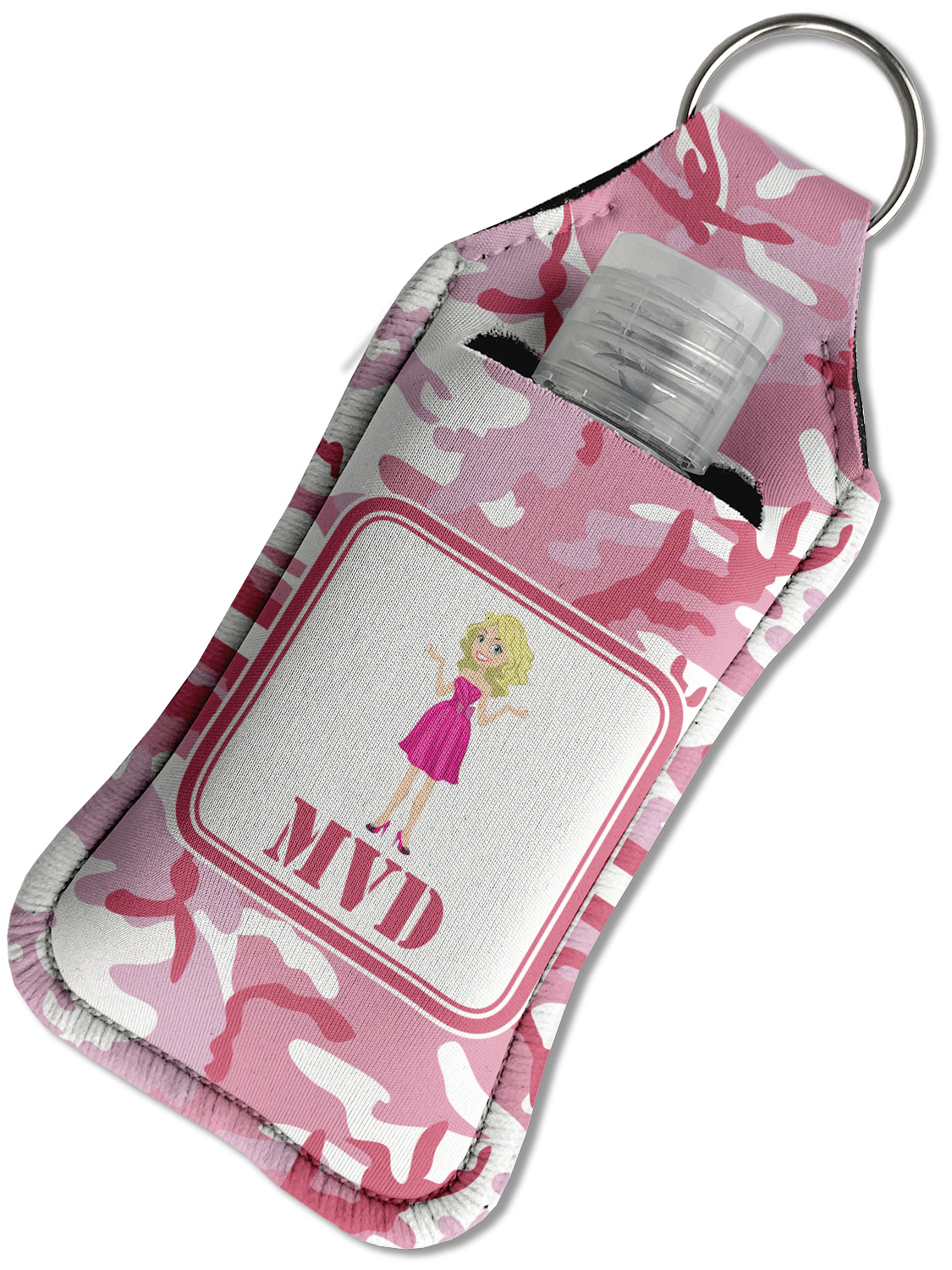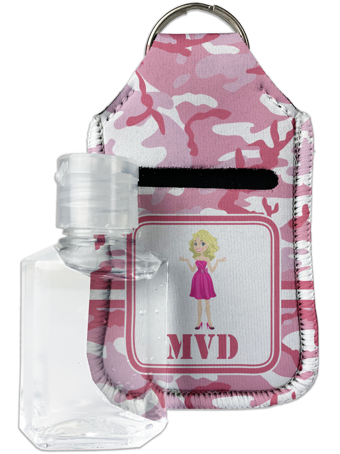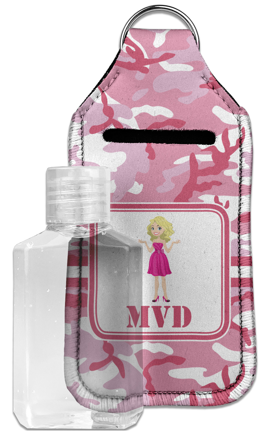 Each hand sanitizer holder comes with its own empty travel-sized, refillable hand sanitizer sure to fit snug in your customized sanitizer case! Our hand sanitizer cases are a durable, yet soft neoprene material sure to last any daily activities or travel agenda. Customize and personalize a hand sanitizer bottle holder with one of our two sizes - small (4.25" x 2.25") or large (5.5" x 2.5"). Each travel sanitizer holder comes with a keyring for attachment on bags, keys, or more!