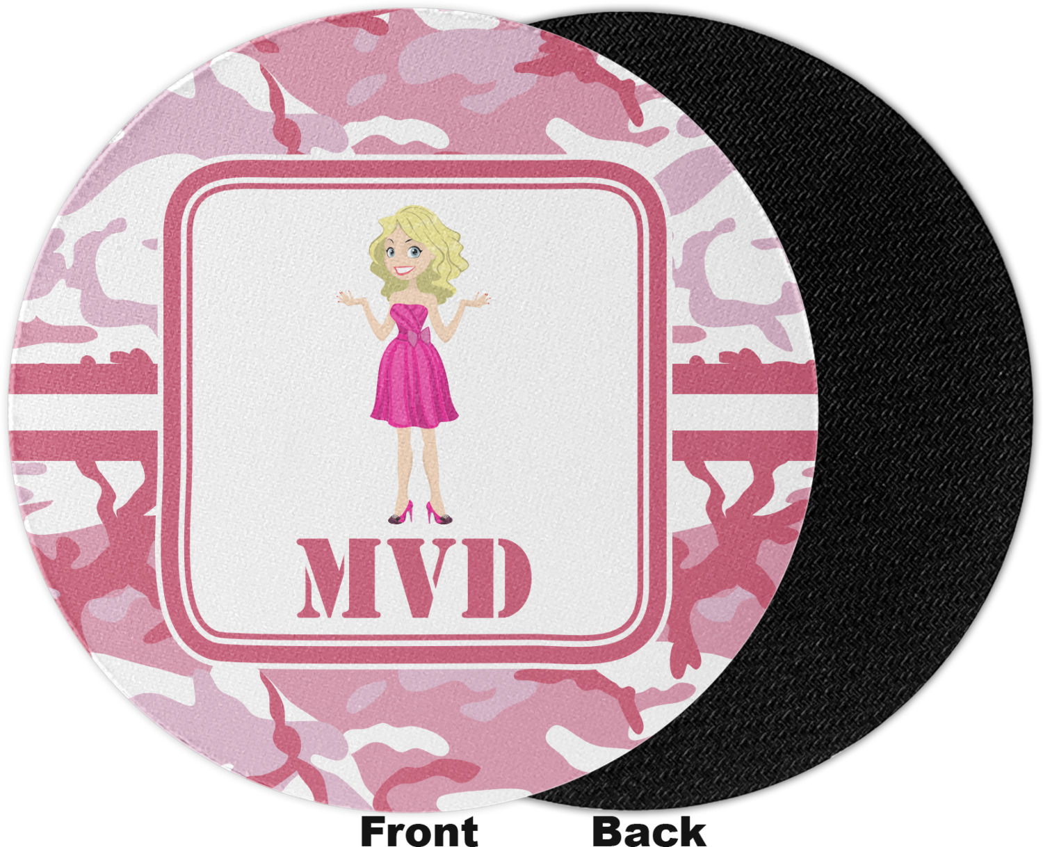 We have featured our little army girl, wearing her pink camo helmet, in the middle of the design in a pink and white square. A wide white band trimmed in pink tie everything together.
