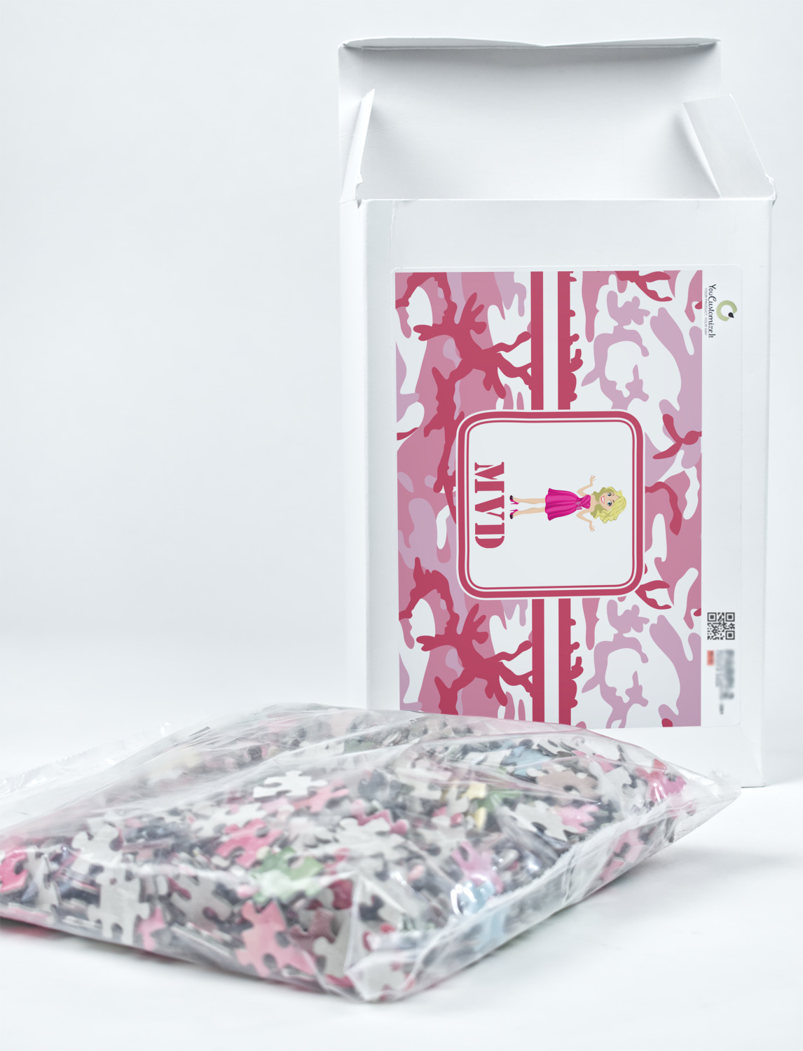 You can also upload your logo or art that you or your kids drew. To create more challenging jigsaw puzzles, you can create a pattern from with your logo or artwork. You can also add other elements such as text or personalization.