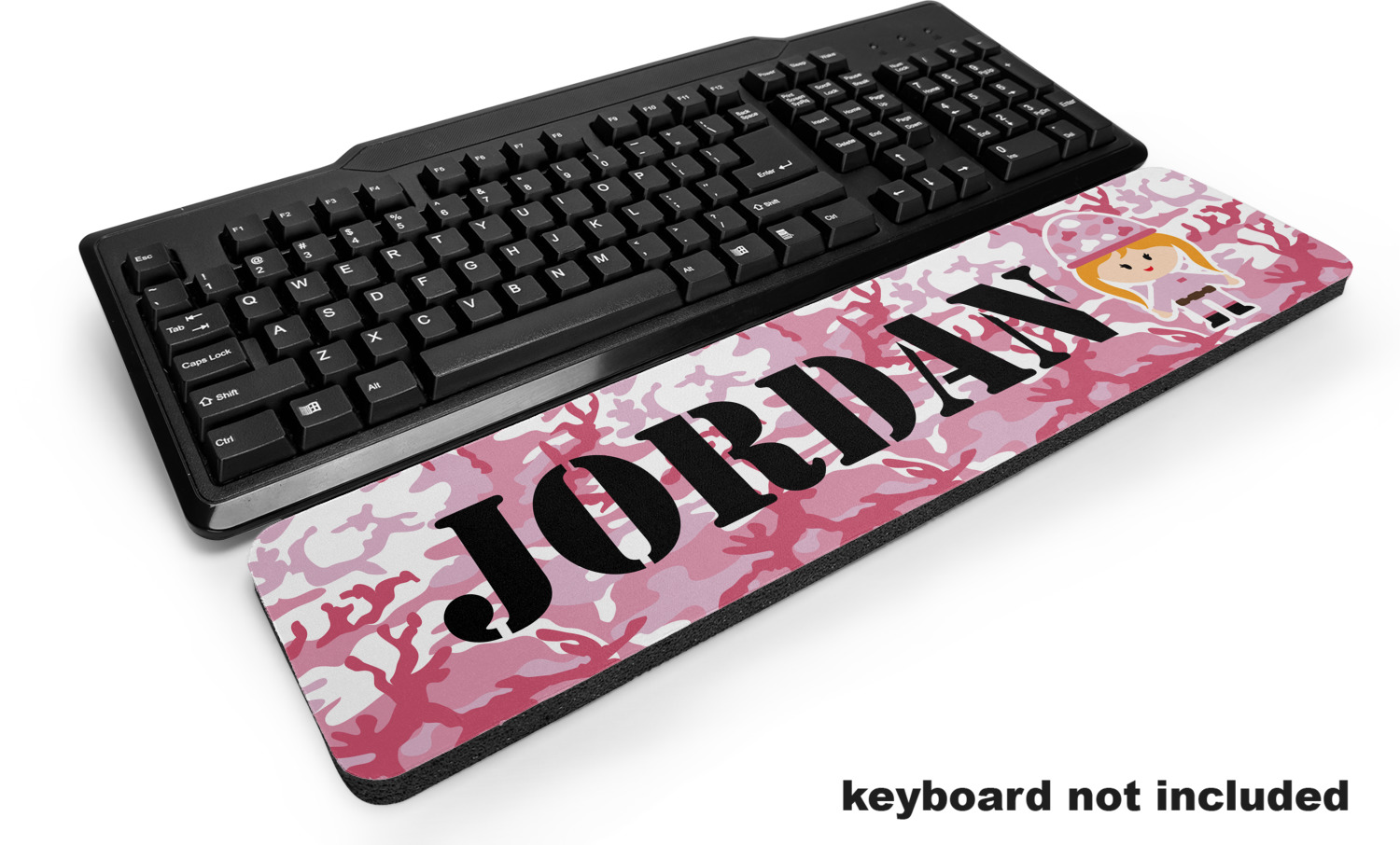 Constructed from a firm rubber that is 0.5" thick, this keyboard pad lends plenty of support to your wrist, while its polyester top feels soft against your skin. Your personalized design is also displayed across this polyester top. At 17.5" x 4", this keyboard wrist support is the same length as most, standard-sized keyboards. With its rounded corners, the pad has a suave, sophisticated appearance, and will complement any keyboard of your choosing.