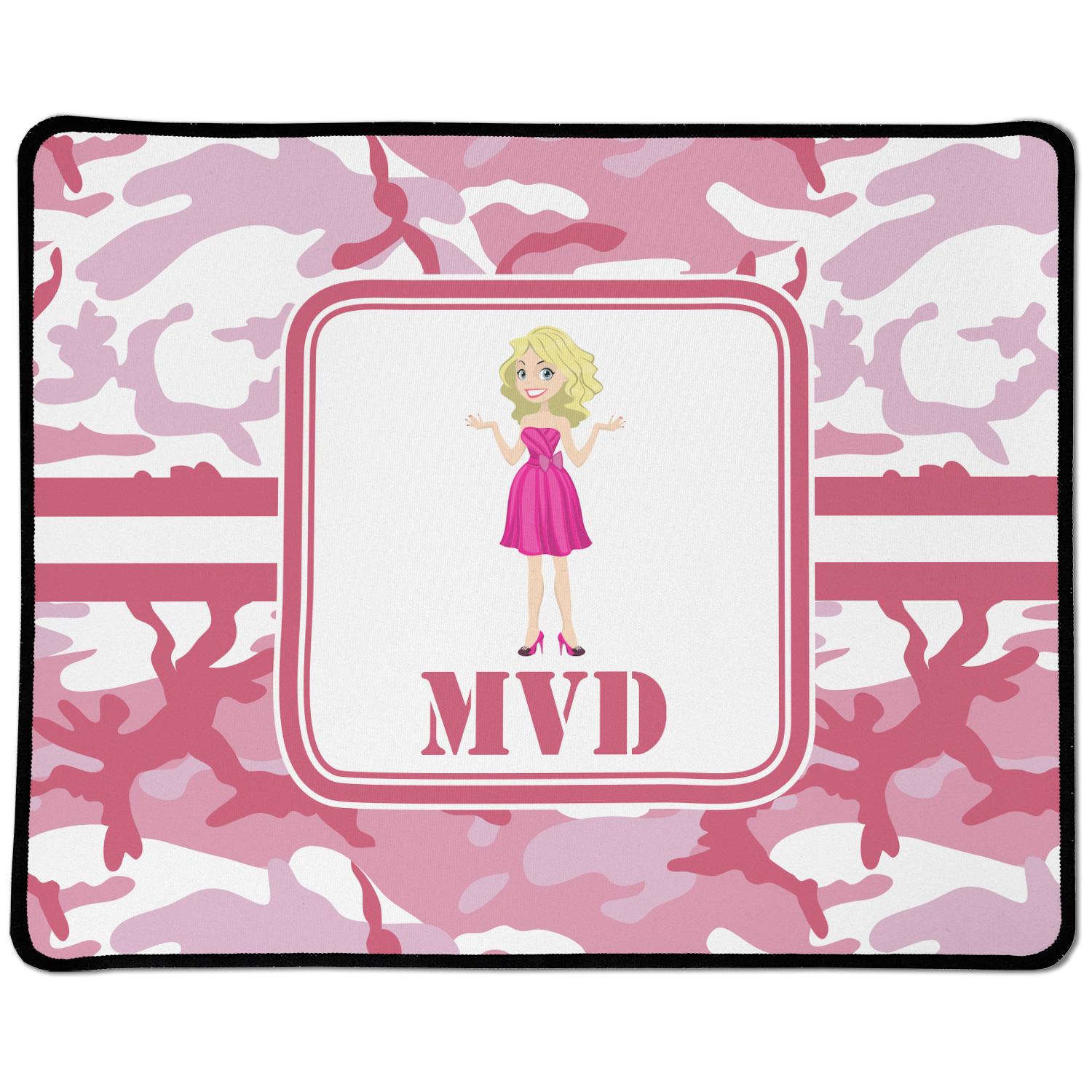 We have featured our little army girl, wearing her pink camo helmet, in the middle of the design in a pink and white square. A wide white band trimmed in pink tie everything together.