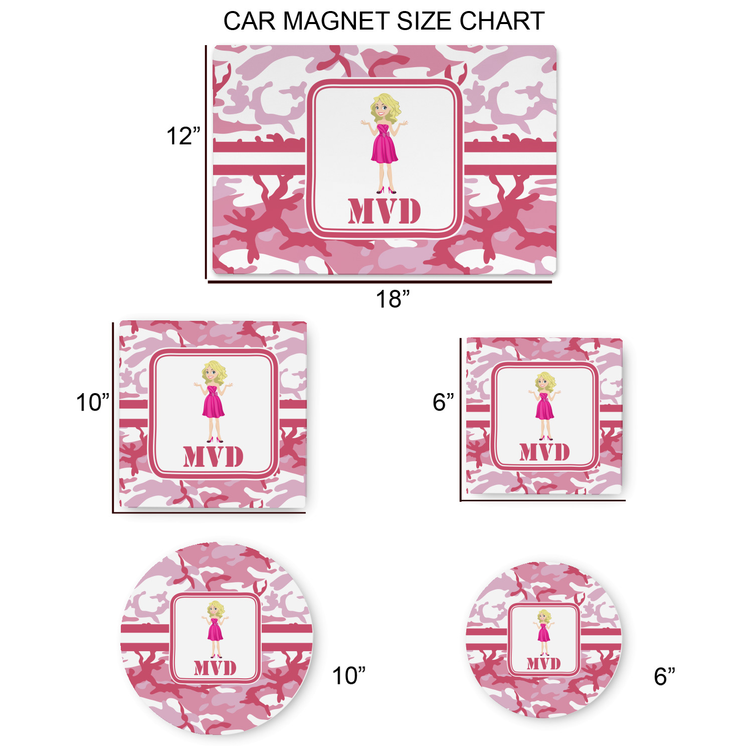 Your personalized large car magnet measures at 18 inches wide by 12 inches tall. They are 1 millimeter thick, which is considered, within the industry, as the ideal thickness for automobile magnets. The magnetic car decals will adhere to any smooth, ferrous metal surface of your cars body, such as the trunk door or a side panel.