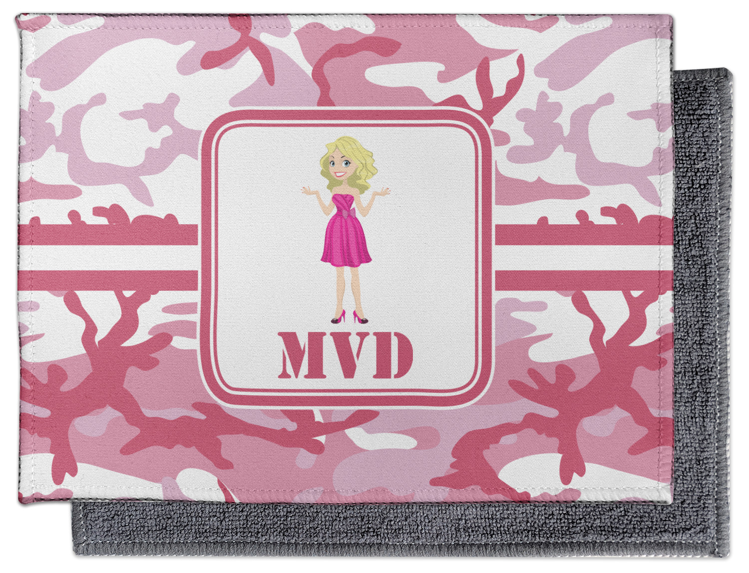 The back of this cleaning cloth is made from a gentle, grey microfiber material, that is masterful at removing smudges, grease, and fingerprints from lenses or electronic screens. The front side of the screen cleaner displays your personalized design in vibrant color. A beautiful stitch lines the edges and secures the microfiber to the polyester top. We provide you with the option of customizing this screen horizontally or vertically, depending on your preferences.