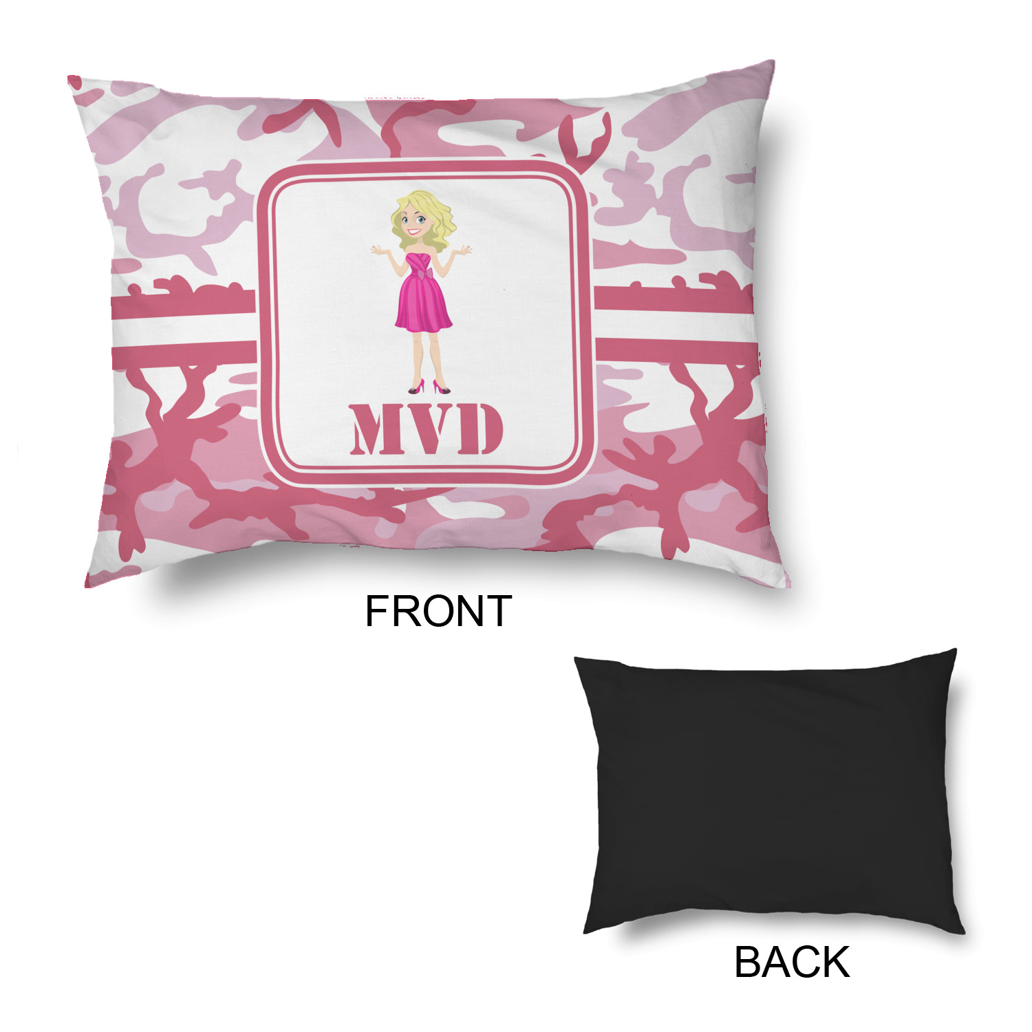 We have featured our little army girl, wearing her pink camo helmet, in the middle of the design in a pink and white square. A wide white band trimmed in pink tie everything together.