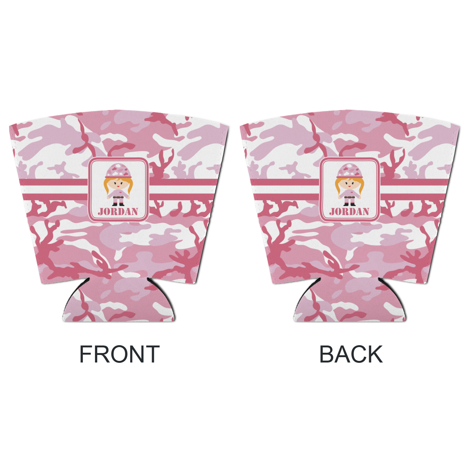 We have featured our little army girl, wearing her pink camo helmet, in the middle of the design in a pink and white square. A wide white band trimmed in pink tie everything together.