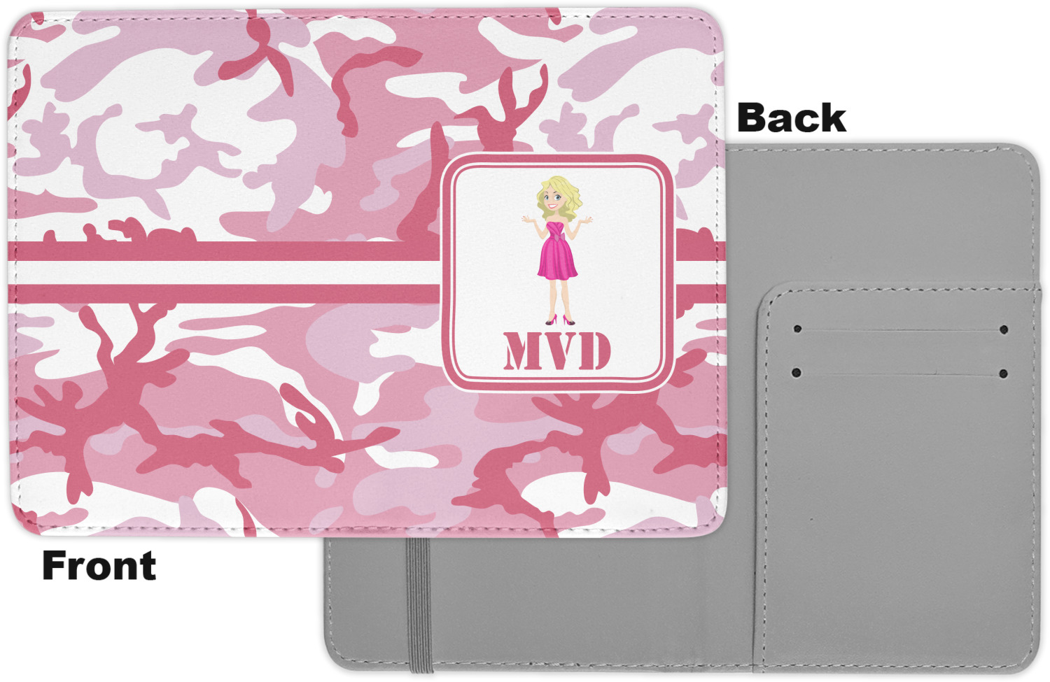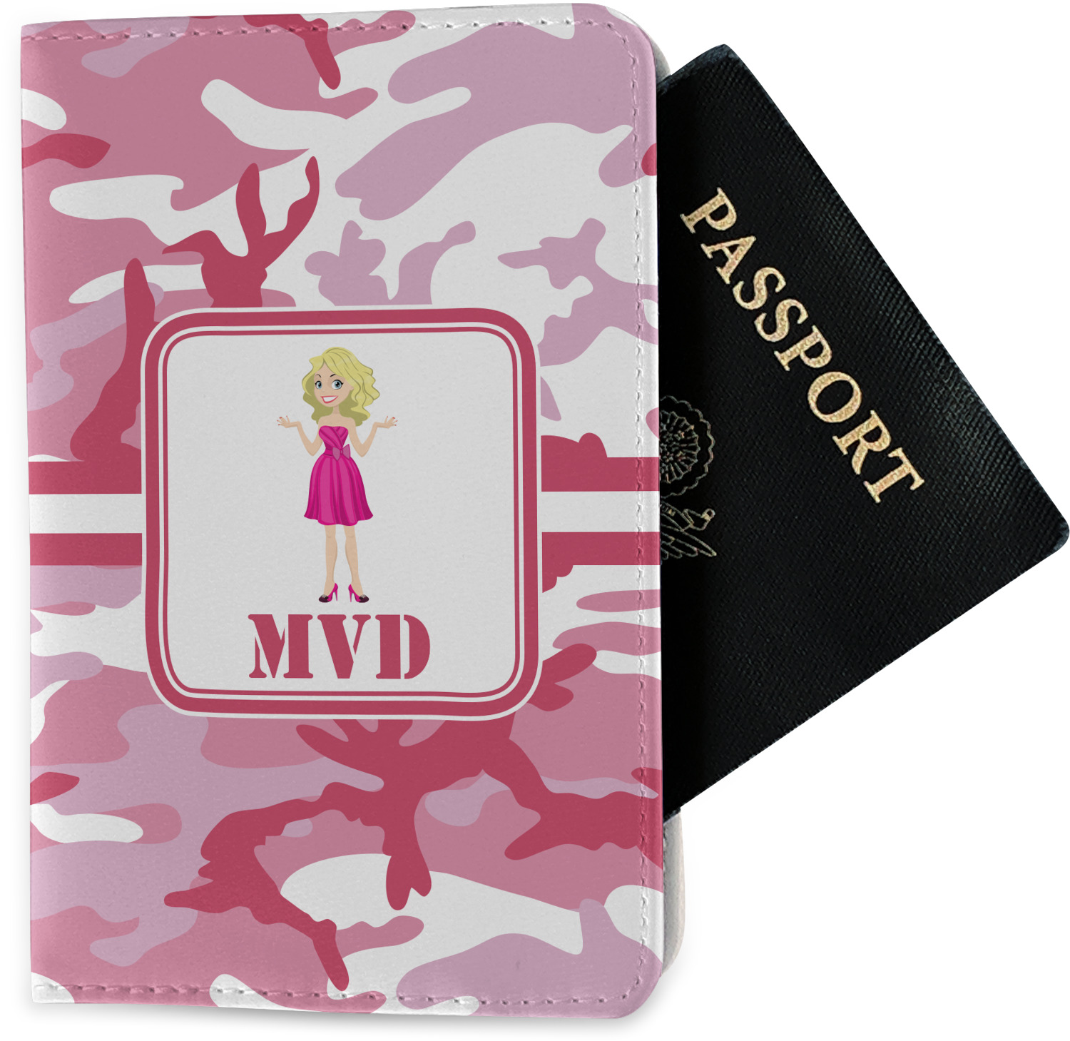 The passport holder has a beautiful inside made of faux leather, while the outside is a smooth slick vinyl like material printed with your personal design.