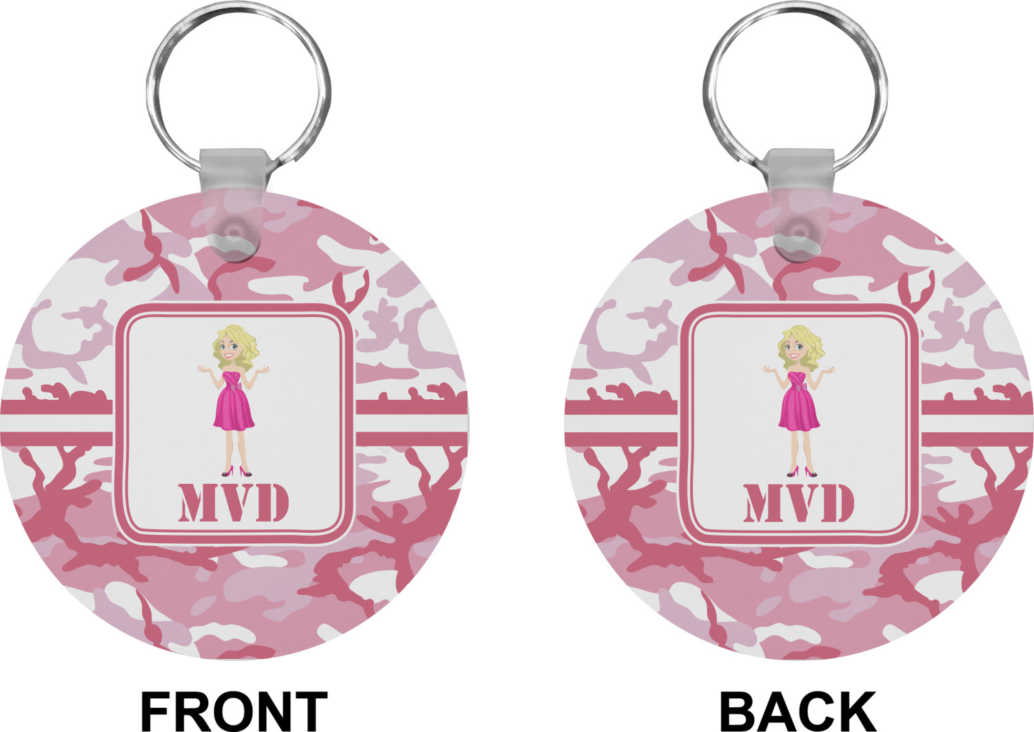 Our personalized keychains attach to the included metal, split key ring with a plastic, removable snap. Since a metal ring is included with your purchase, you have the liberty to keep your keys together on the ring, with or without your unique keychain. We offer this keychain in three different shapes: circle, heart, or diamond. We print your personalized design(s) on both sides of the key chain, and the surface has a glossy, reflective finish that only emphasizes your design. Each keychain is approximately 2.25 by 2.25 inches.