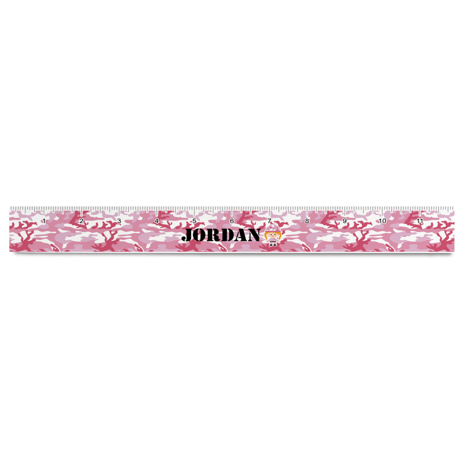 We have featured our little army girl, wearing her pink camo helmet, in the middle of the design in a pink and white square. A wide white band trimmed in pink tie everything together.