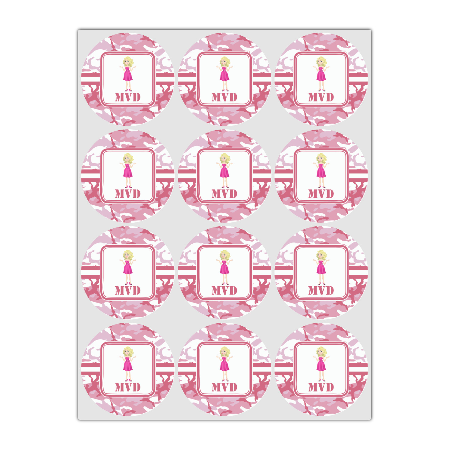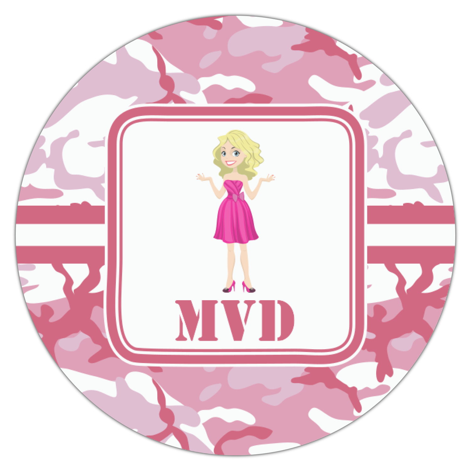 We have featured our little army girl, wearing her pink camo helmet, in the middle of the design in a pink and white square. A wide white band trimmed in pink tie everything together.