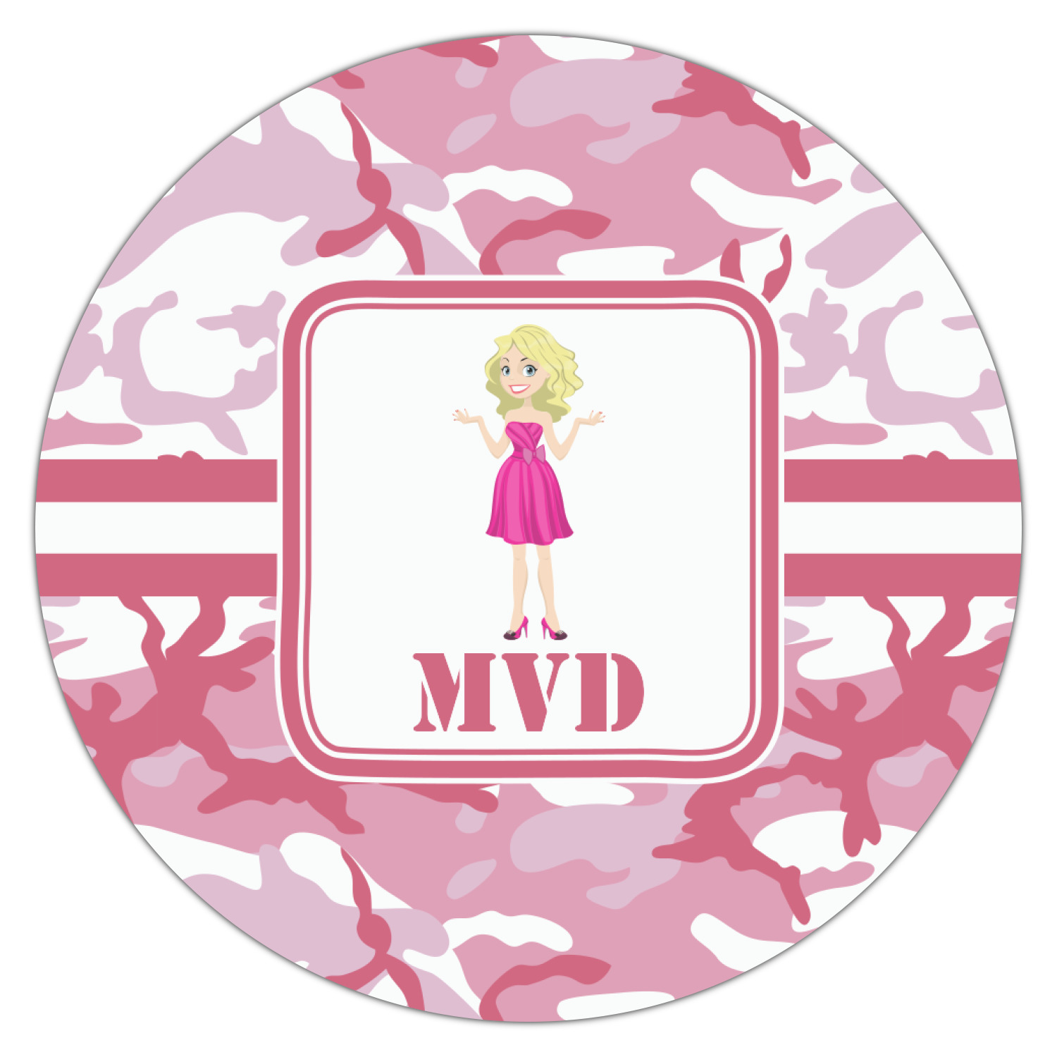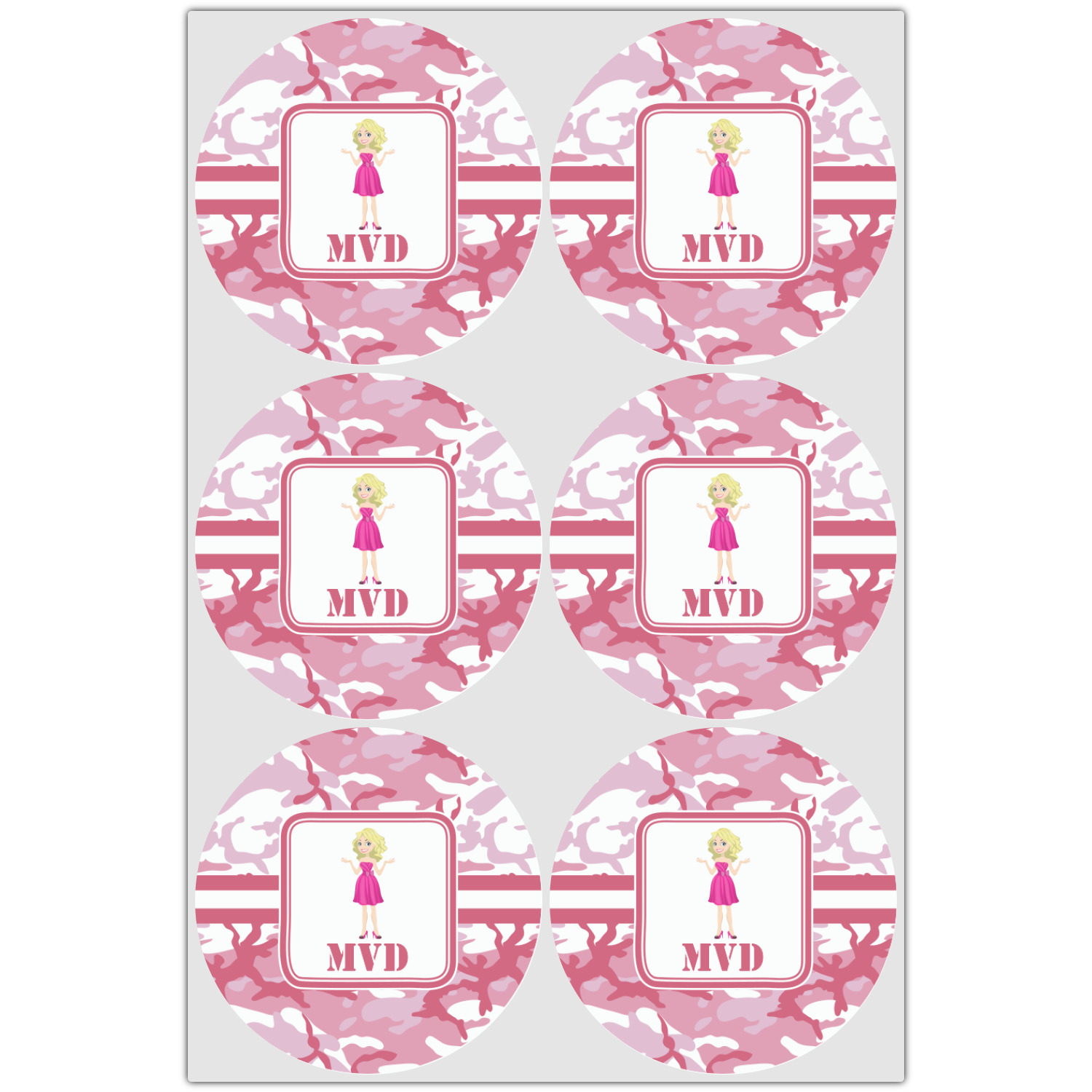 We have featured our little army girl, wearing her pink camo helmet, in the middle of the design in a pink and white square. A wide white band trimmed in pink tie everything together.