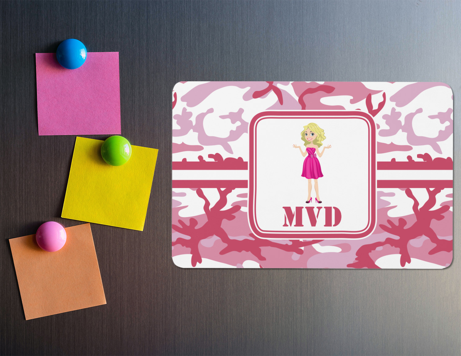 Our custom fridge magnets are crafted from aluminum, and feature a magnetic backing that allows it to adhere to magnetic surfaces, such as your fridge, a locker, dry erase boards, and more! The entire face of the magnet displays your design, and the glossy finish makes the surface of your magnet shine. This custom magnet measures at 2 by 3 inches.