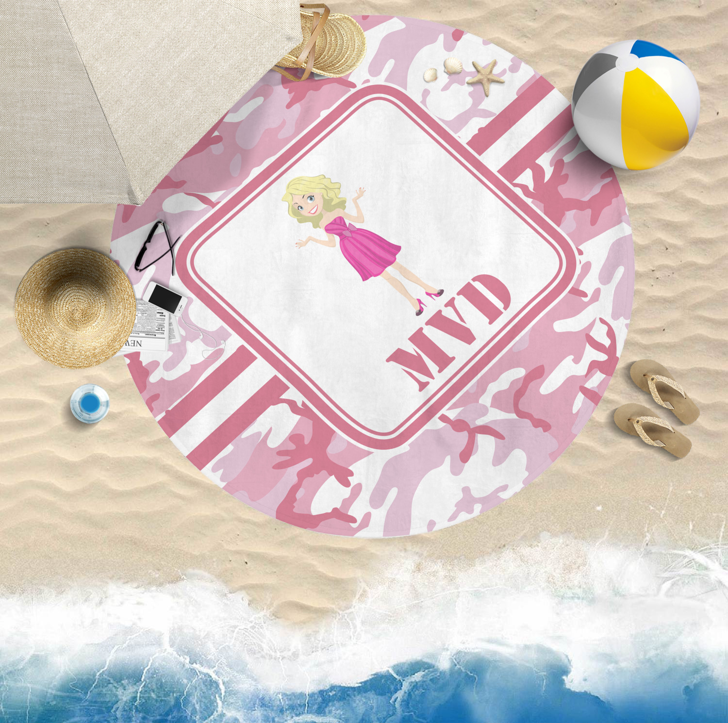 Think out of the box on your next beach, pool, or picnic day in style on your personalized round towel. This must have durable accessory is the perfect size for keeping you, and your possessions out of the sand. Sprawl out in the sun without getting your hands dirty, the unique round design allows for a full range of motion.