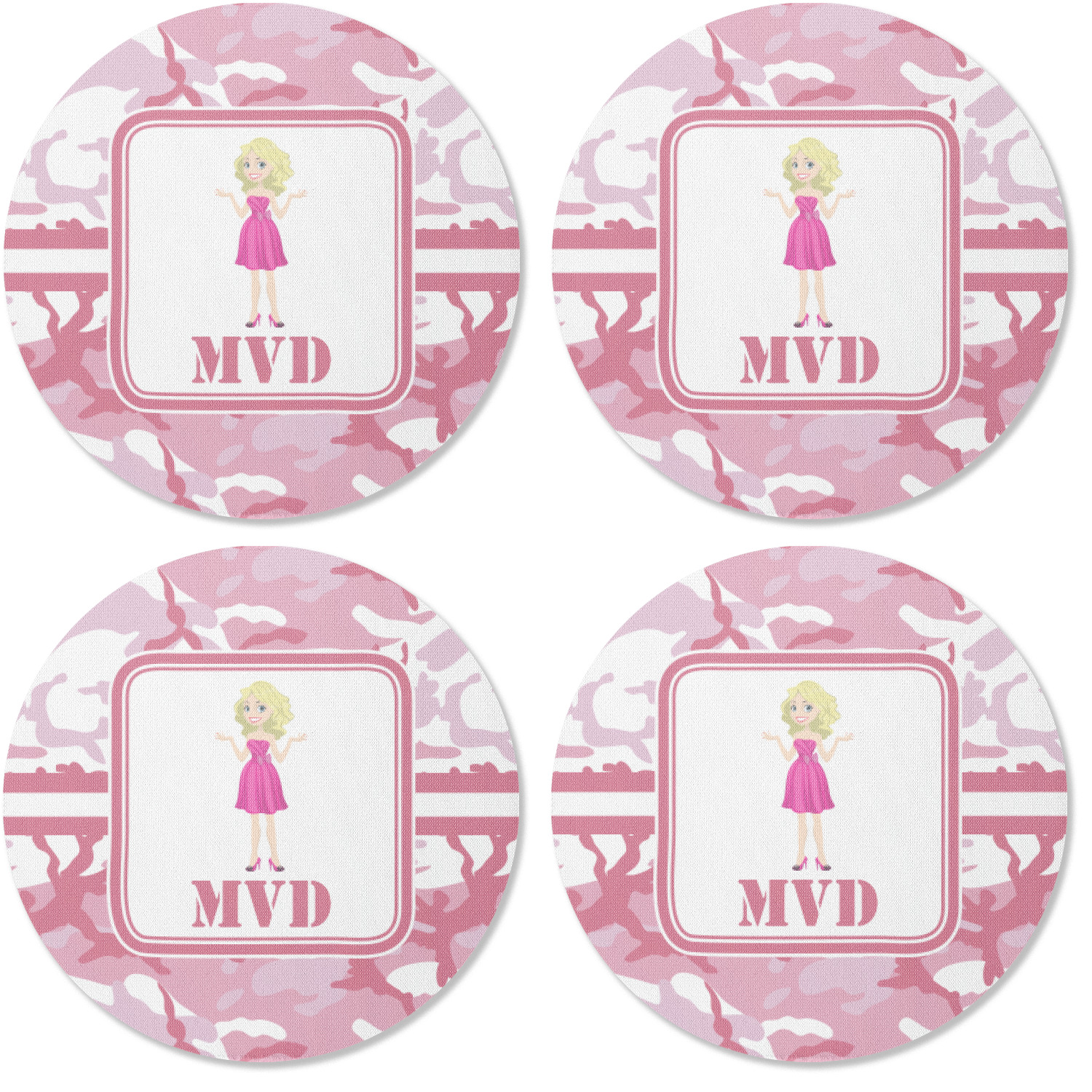 These drink coasters have a smooth, polyester top and a textured, rubber backing on its bottom. The non-slip rubber backing underneath works to keep any spills at bay. At 4 by 4 by 0.25 inches thick, these custom coasters are a suitable size for most drinkware. Your personalization is displayed atop the face of the cup coaster. We sell these rubber coasters in two different shapes: square and round. You can buy each shape as singulars or as a set of 4.