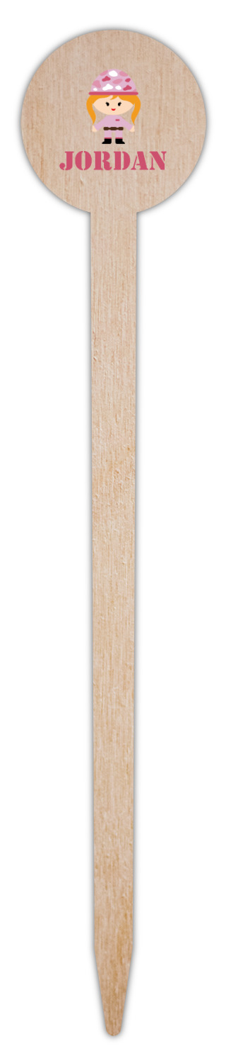 We have featured our little army girl, wearing her pink camo helmet, in the middle of the design in a pink and white square. A wide white band trimmed in pink tie everything together.